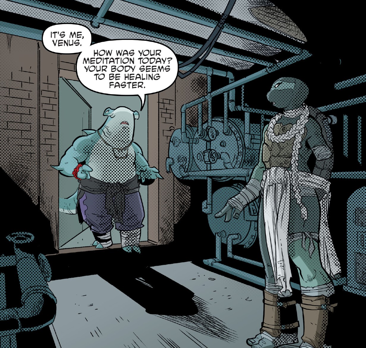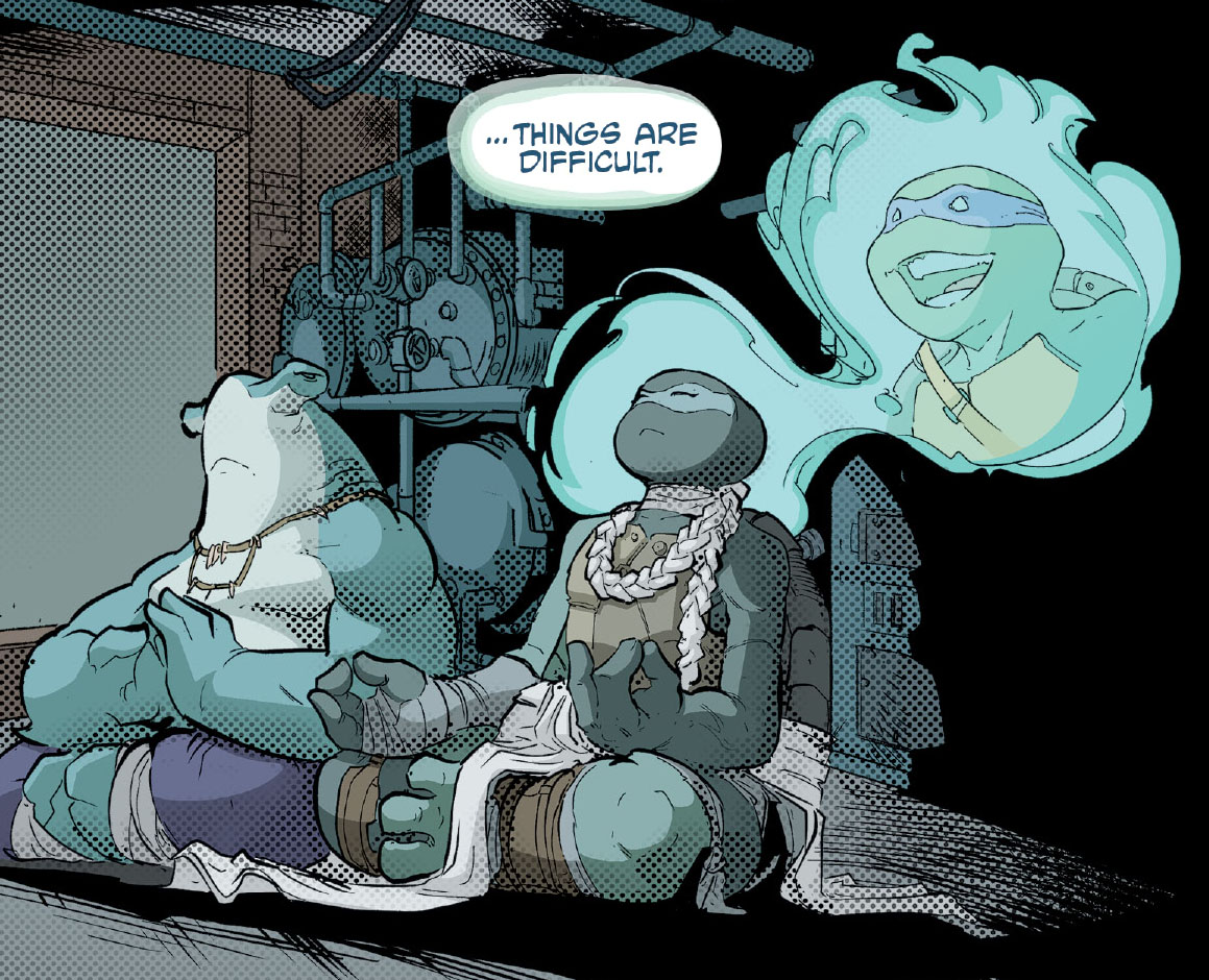 Après cela, les tortues partirent pour Northampton afin de se ressourcer et de se remettre des conflits récents. Par la même occasion, Donatello, Venus et April étudiaient le QNA, jusqu’à ce que leur travail soit saboté par Bob (TMNT #145). Leonardo et la jeune femme furent attaqués par d’étranges créatures générées par le primate. Michelangelo arriva à la rescousse, accompagné de Bludgeon et de Koya, à temps pour aider leurs amis (TMNT #149).