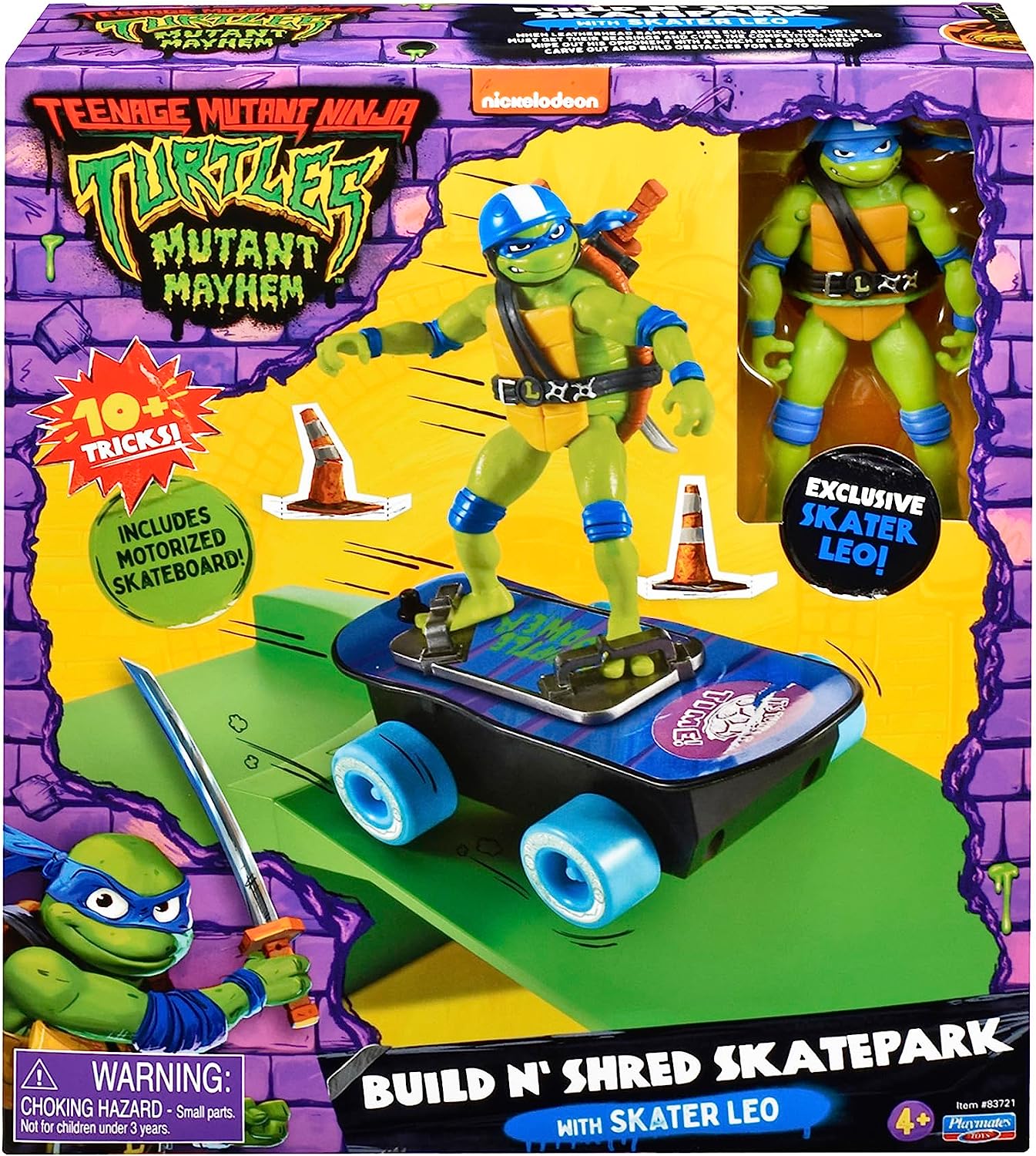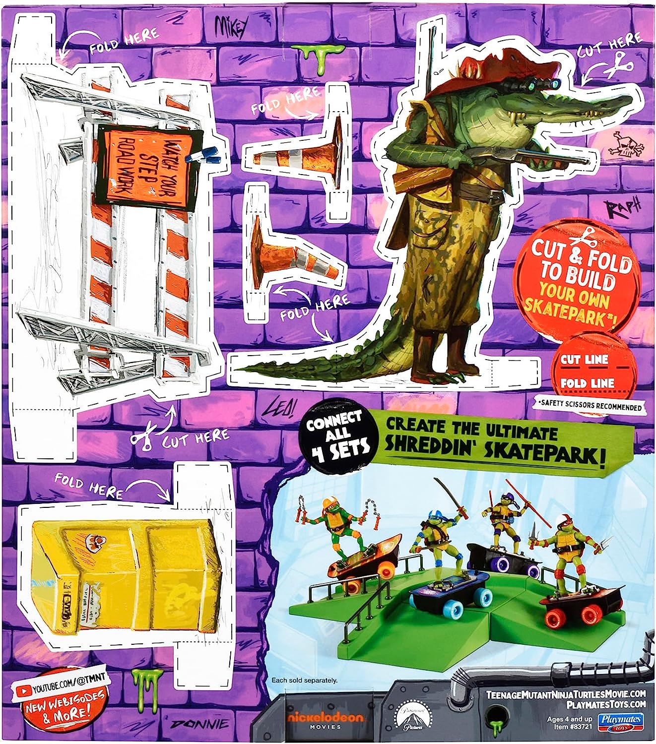 L’arrière des blisters peut être découpé pour ajouter des personnages, comme Leatherhead pour Leonardo, ainsi que d’autres éléments de décors, poubelles, barrières etc.