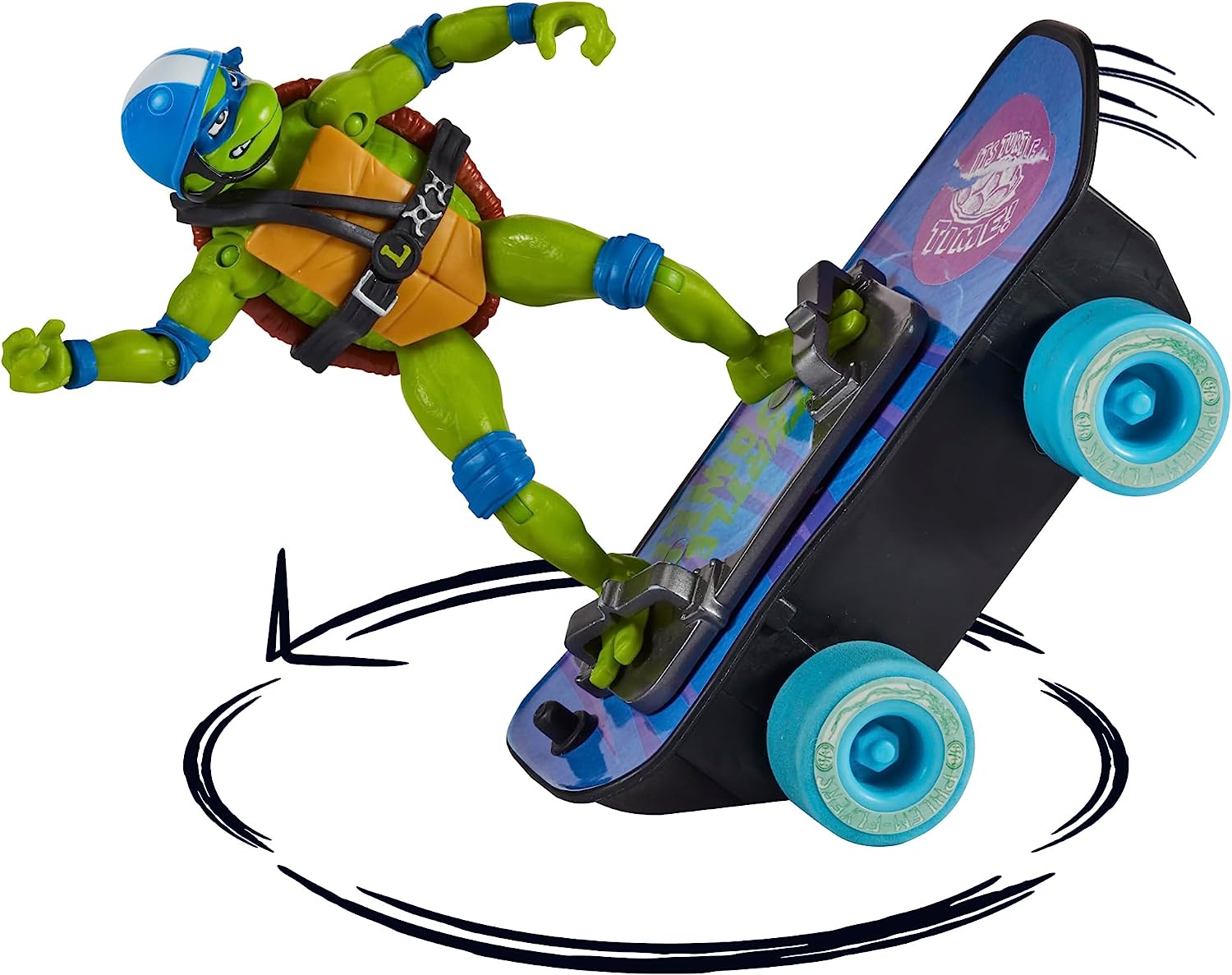 Les skateboards sont tous les mêmes entre les tortues. Il s’agit d’un recyclage du Turtle sewer spinnin’ Skateboard Mikey de 2012.