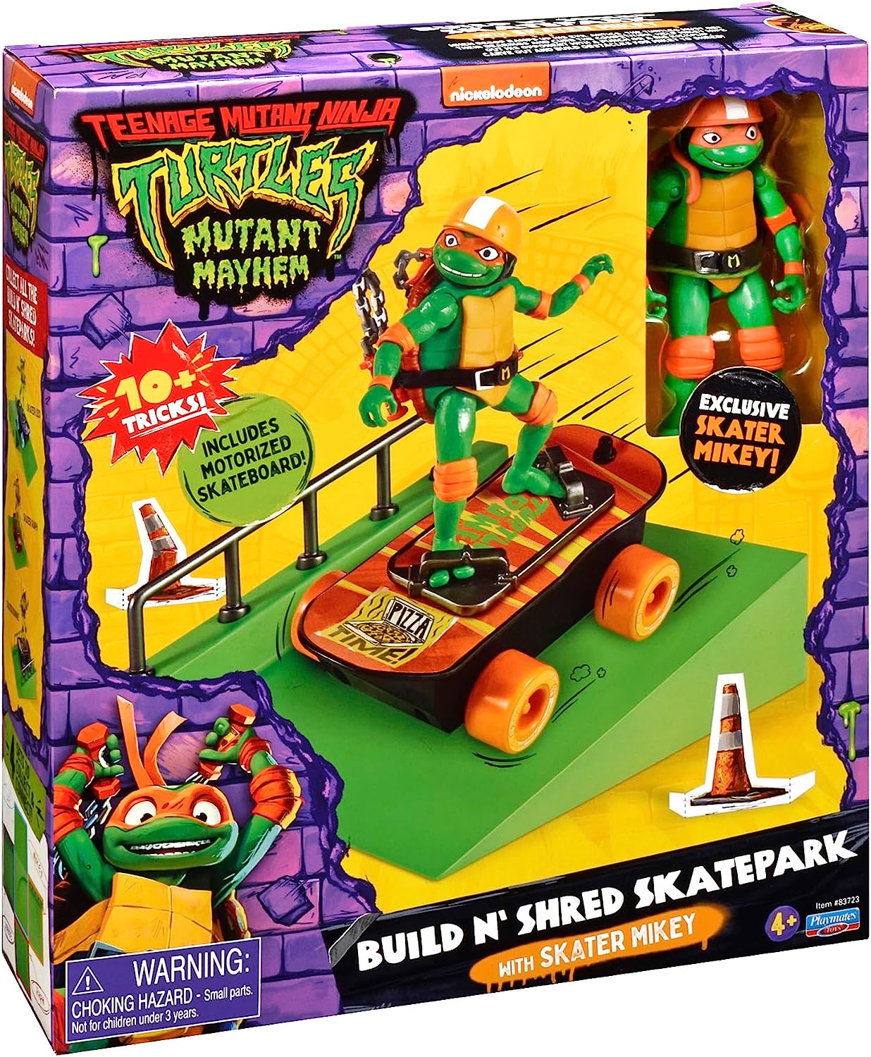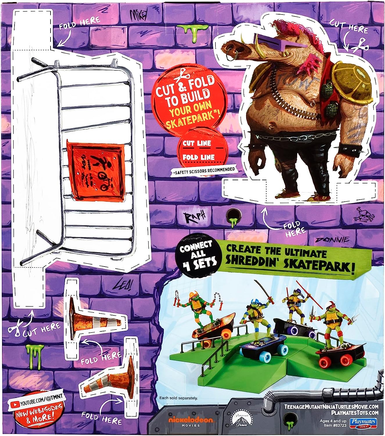 Les figurines Build N’shred skatepark, au nombre de quatre, proposent de réunir les quatre structures pour construire un skatepark géant pour nos tortues.