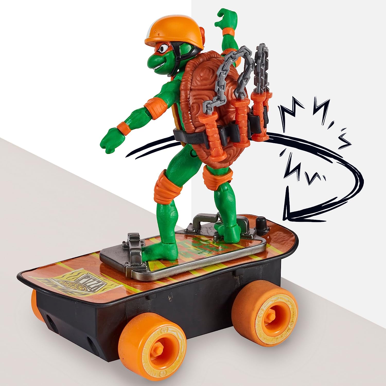 Les skateboards sont tous les mêmes entre les tortues. Il s’agit d’un recyclage du Turtle sewer spinnin’ Skateboard Mikey de 2012.