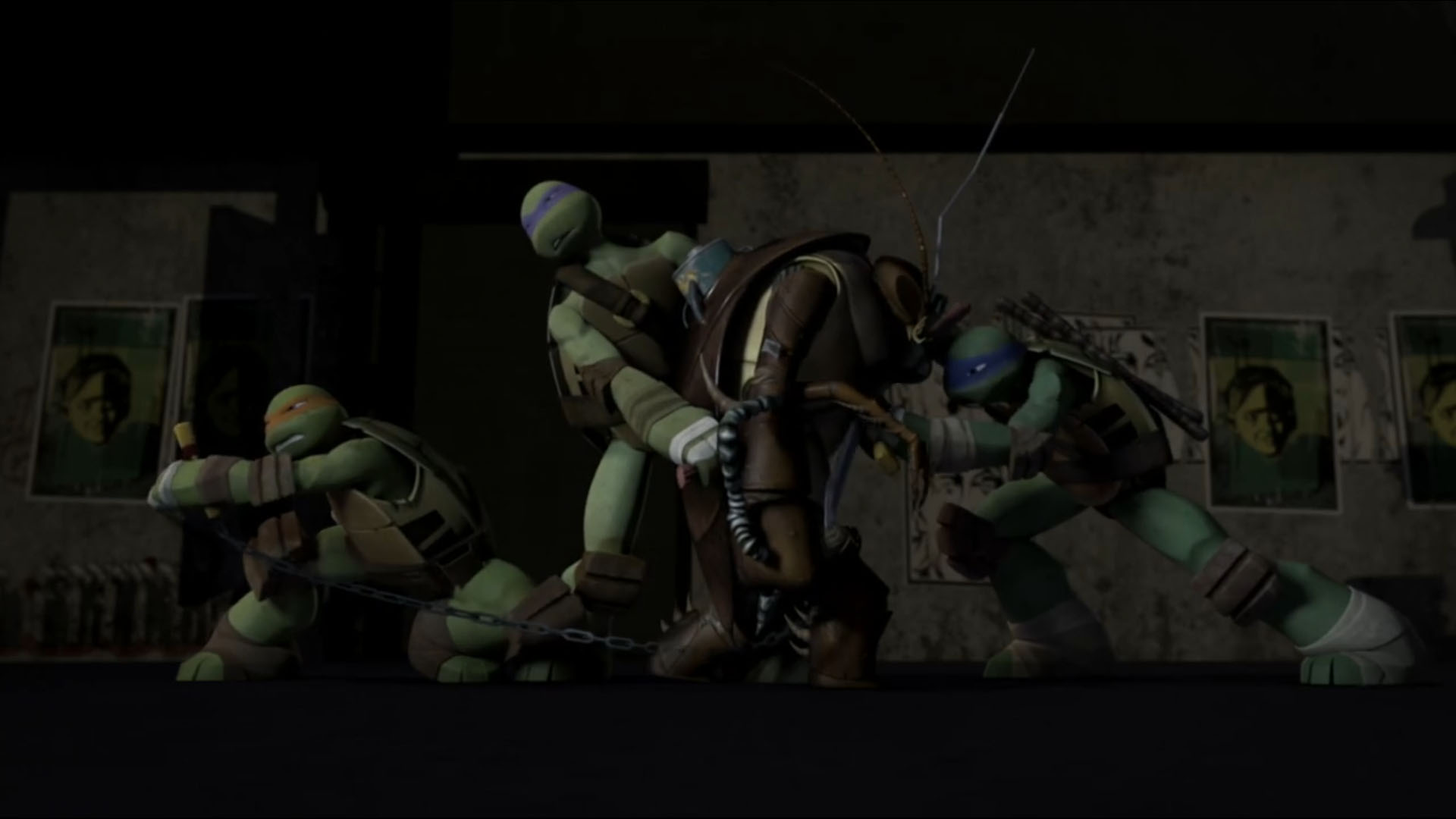 Le cafard Terminator, surnommé Chong, était à l’origine un cafard utilisé par Donatello pour faire de l’espionnage. La tortue l’avait dressé et muni d’une micro-caméra posée sur le dos de l’insecte afin d’infiltrer les installations kraangs. Lorsqu’il le présenta à ses frères, il avait oublié que Raphael en était phobique. Le ninja essaya de tuer le cafard de ses saïs.