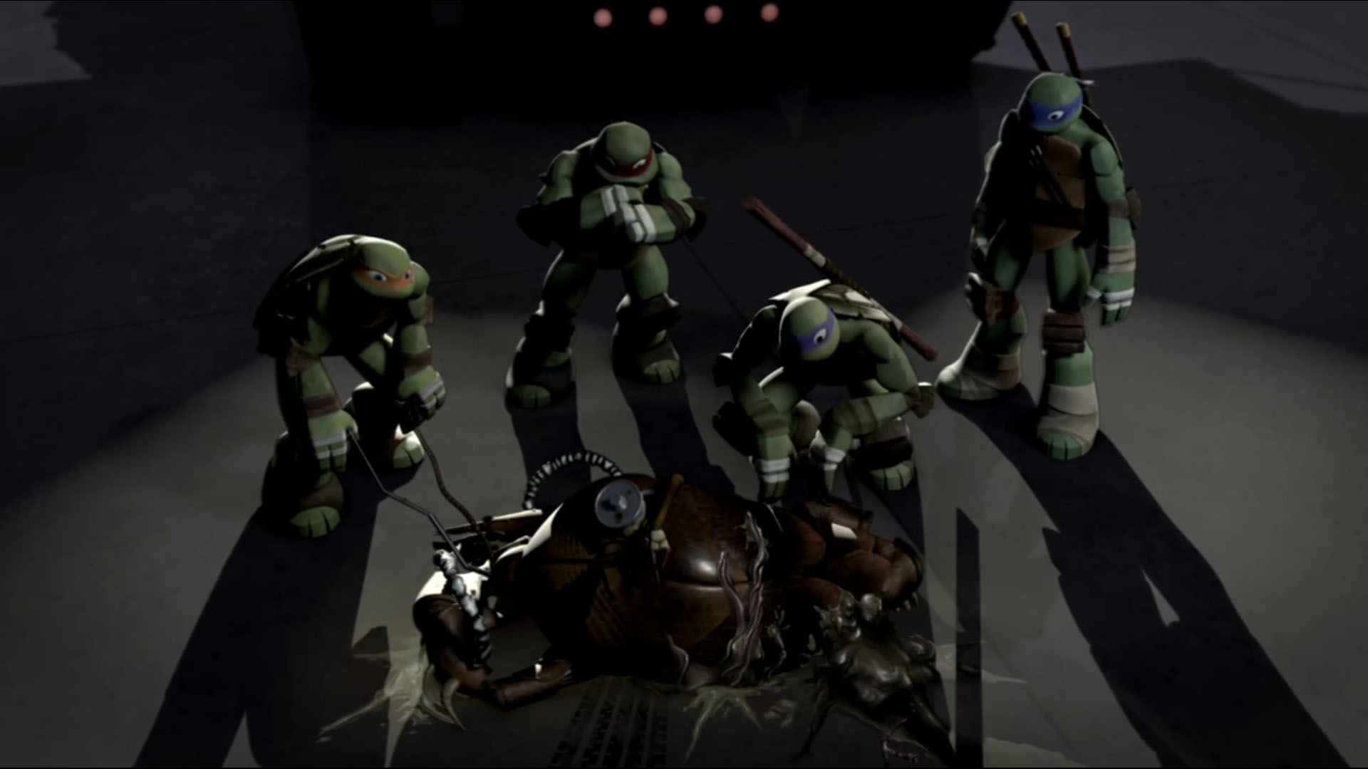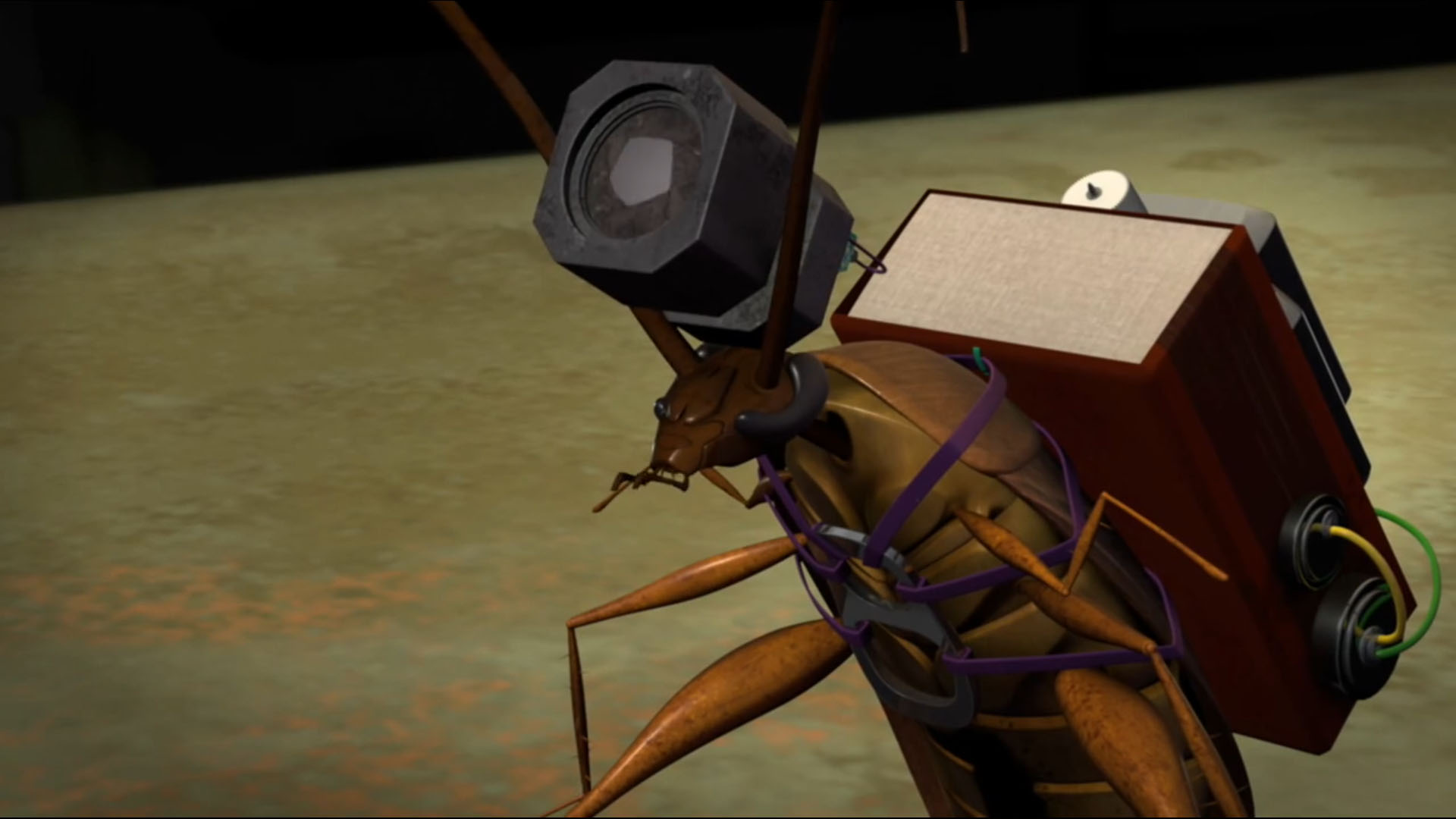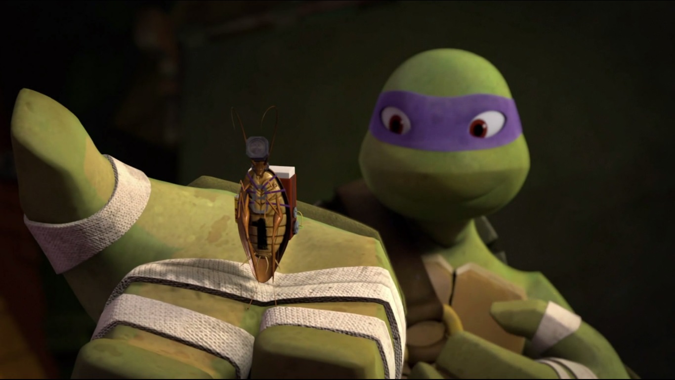 Au cours d’une mission dans un entrepôt, le cafard avait escaladé une poutrelle en fer, pour espionner des cuves installées par les kraangs. Donatello se rapprocha avec la caméra de la discussion entre les deux individus et déséquilibra l’insecte, le faisant tomber dans l’une des cuves de mutagène. Le cafard a fusionna avec ses appareils électroniques. Devenu plus forts, et intelligent, il détruisit les kraangs présents et prit un de leurs lasers.