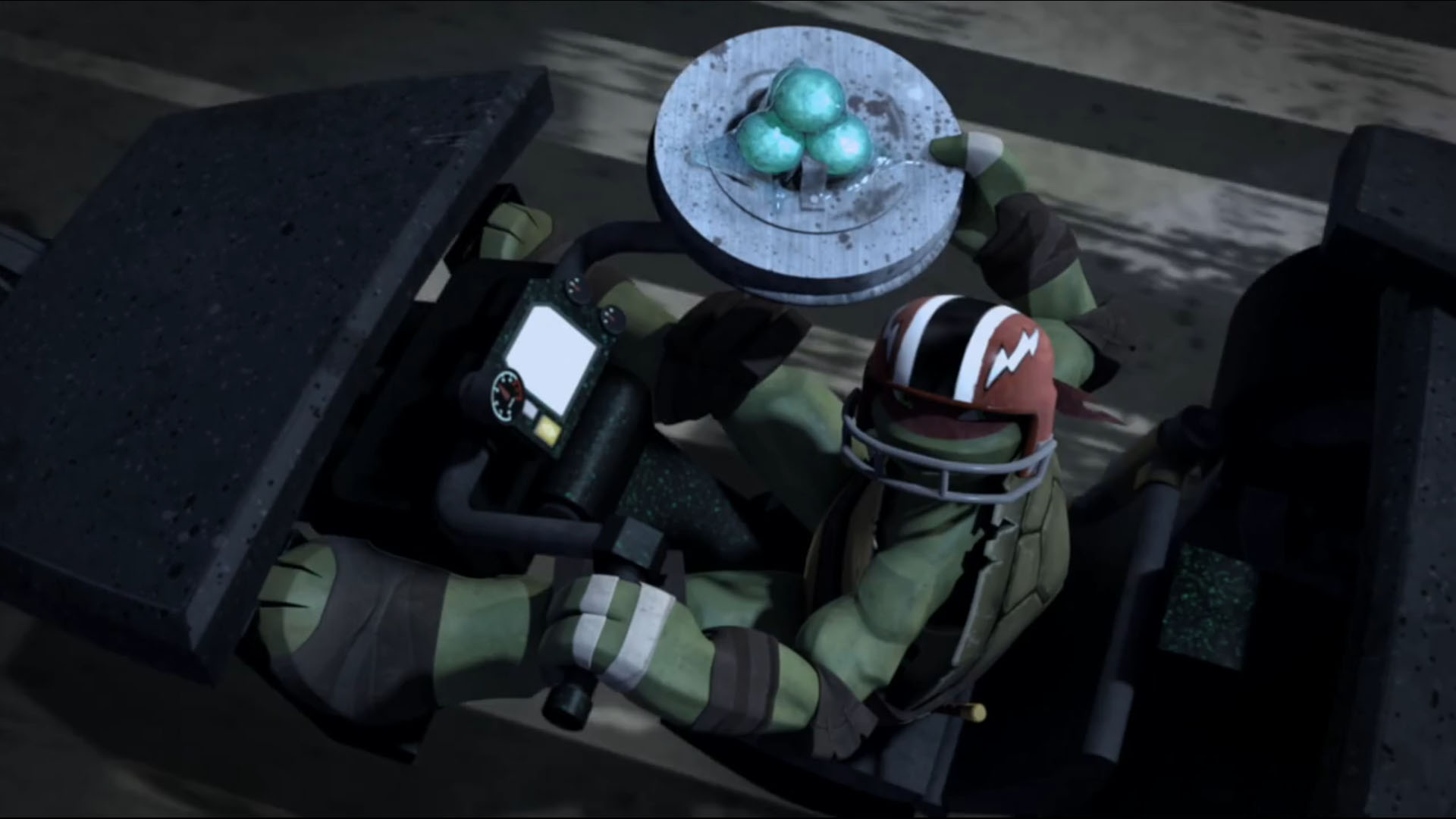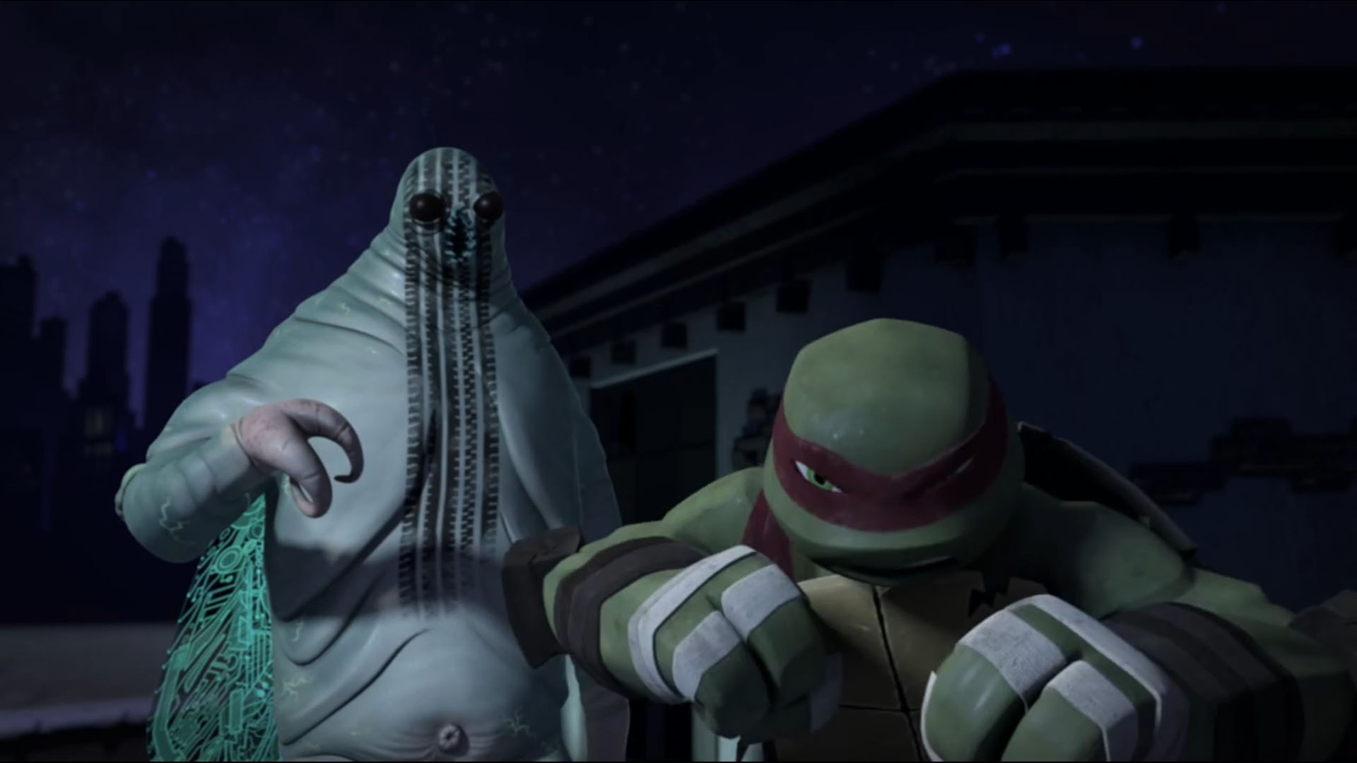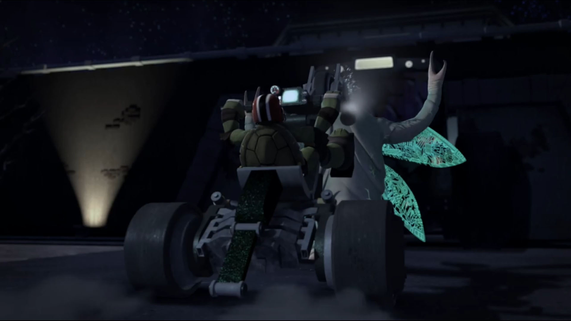 Au cours d’une mission dans un entrepôt, le cafard avait escaladé une poutrelle en fer, pour espionner des cuves installées par les kraangs. Donatello se rapprocha avec la caméra de la discussion entre les deux individus et déséquilibra l’insecte, le faisant tomber dans l’une des cuves de mutagène. Le cafard a fusionna avec ses appareils électroniques. Devenu plus forts, et intelligent, il détruisit les kraangs présents et prit un de leurs lasers.