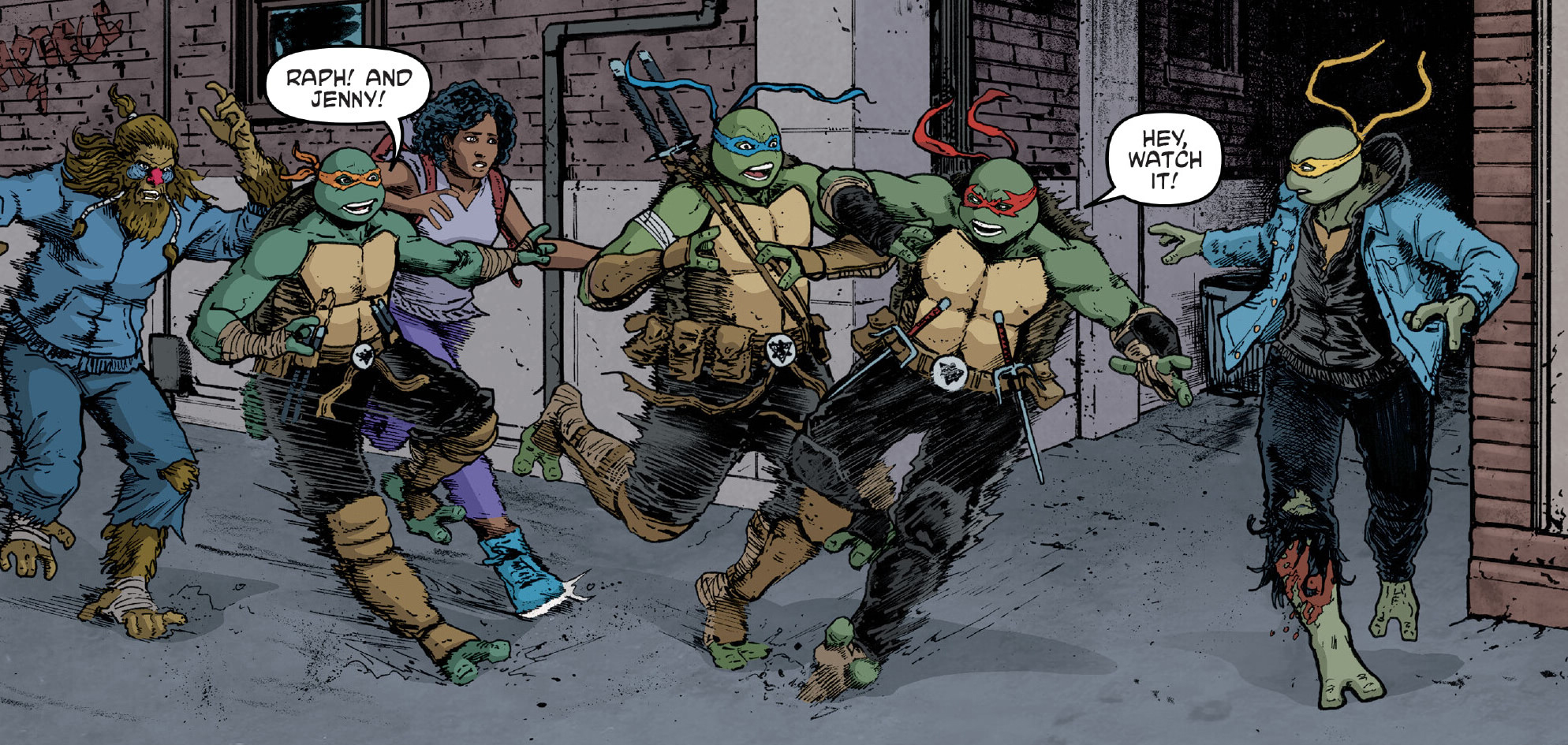 Après la montée de tension entre les tortues, Leonardo décida de s’en aller pour Northampton, loin des tensions de New York. Bob et Carmen, ses deux disciples, le suivirent pour poursuivre leur formation (TMNT #144). Donatello, April et Venus se joignirent à eux afin de continuer leurs expériences autour du voyage temporel et du QNA. Mais les trois compagnons firent face à un imprévu lorsqu’un portail aspira les deux mutants, avec le concours de Bob, manipulé (TMNT #145). Leonardo et Carmen essayèrent de repousser des créatures qui sortaient du portail pour permettre à April de comprendre ce qu’il se passait (TMNT #146).