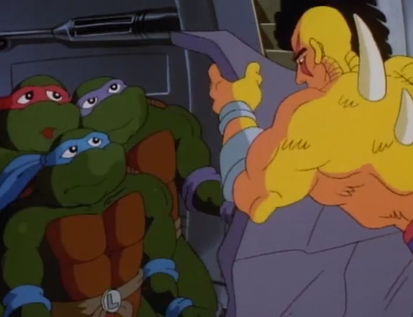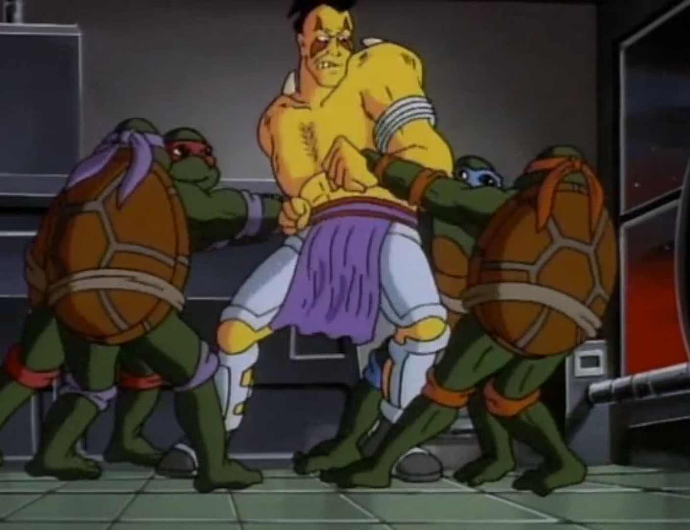 Ils les emmenèrent à leur époque pour leur montrer que Dregg avait conquis la Terre. Mais les deux sauveteurs furent capturés. Les tortues volèrent à leur secours et découvrirent que Carter s’était effectivement rallié à Dregg. Donatello refusait de croire à la trahison de leur ami, qui était devenu bien plus fort qu’avant. Ils découvrirent qu’il s’agissait en réalité d’un robot. De retour à leur époque, les tortues partirent sauver leur ami, retenu prisonnier par Dregg qui s’apprêtait à l’envoyer dans l’espace. Ils détruisirent le robot Carter de leur époque, empêchant une nouvelle invasion de la Terre (Carter à la rescousse, S9 E7).