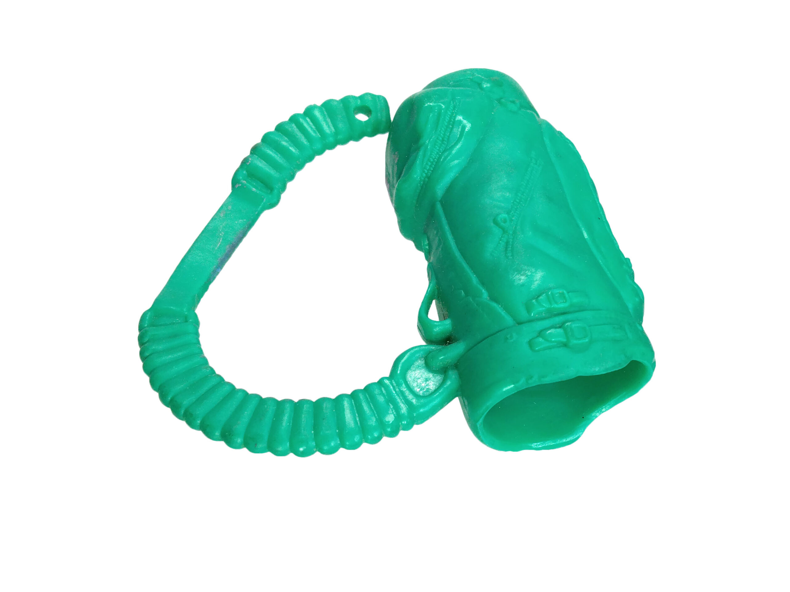 Ce modèle est très intéressant, car il présente Casey Jones avec des accessoires de couleur bruns clairs, et non verts comme dans la version finale. De même, la courroie de son sac est plaquée le long de son torse et non mise sur la tranche. Cette courroie est pourtant identique. En revanche, lorsque l’on regarde attentivement les photos du prototype, on se rend compte qu’elle était prévue pour être légèrement torsadée pour épouser la poitrine du justicier. Finalement, elle n’a pas reçu cette attention, faisant d’elle une simple courroie longiligne et peu harmonieuse.