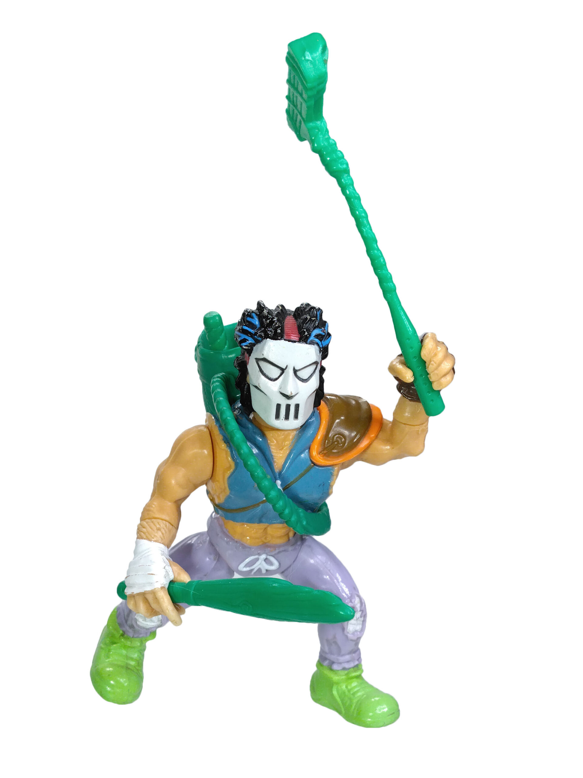 Like a psychos, Casey Jones, the masked sportsman, wanted to be a legend. Armed with broken bats, shattered dreams and one golf club, Casey turned his ambition toward crime-fighting. Modeling himself after his favorite vigilante cop show, Casey decided to take the law into his own mitts. Outfitted with castoff sportsgear, Casey challenges every criminal who dares to go out of bounds. This bat-bearing vigilante fights to rid the world of all bad sports, including those who would dare steal second base. Casey’s got a score to settle against all lawless losers – from litterbugs to madmen bent on world domination. Teaming up with our beloved Turtle Teens, Casey strikes out with a special vengeance against Shredder and the Foot Clan !