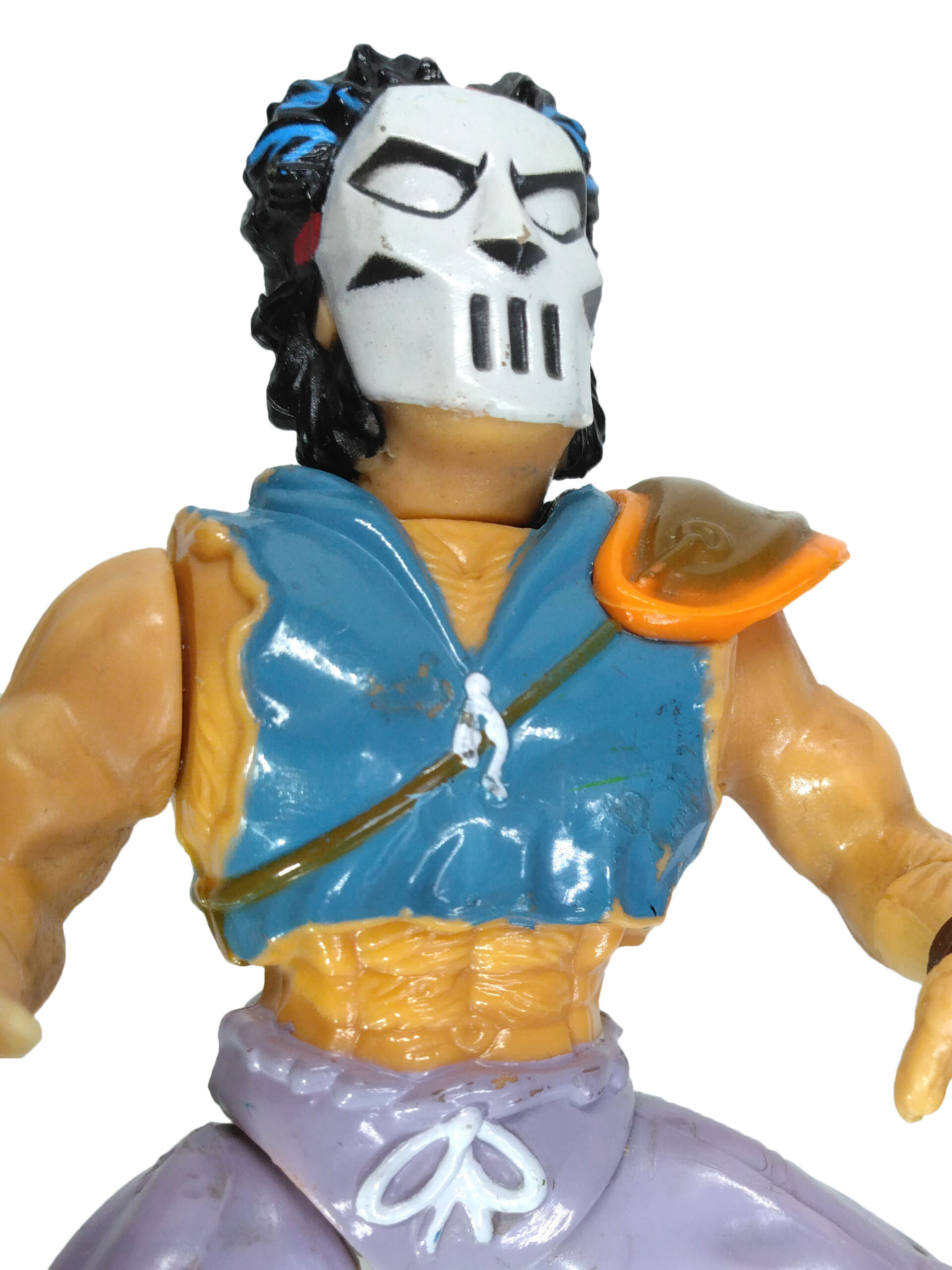 Le masque de Casey ne peut hélas se retirer. Si un visage sans masque avait été sculpté (voir la section « Conception » ci-dessus), celui-ci n’a pas été retenu. La tenue du justicier est principalement calquée sur celle du personnage du comic de Mirage. Il s’agit également d’un habile mélange avec d’autres éléments de la pop-culture, comme Mad Max et sa protection à l’épaule gauche. Celle-ci est collée et non directement moulée sur le personnage, ce qui explique qu’elle est souvent absente des figurines vendues d’occasion.