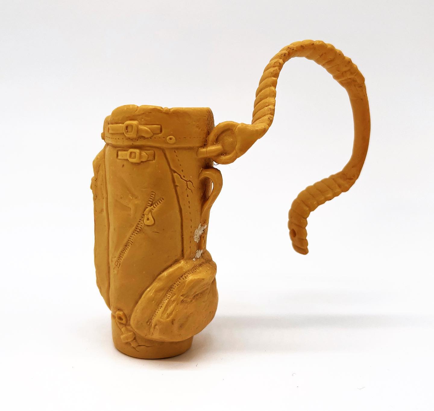 Le sac de golf est extrêmement détaillé. La courroie se détache pour le faire courir sur l’épaule droite du personnage. Au vu de son orientation, vous pouvez également la placer sur l’autre épaule. Le sac propose de nombreuses poches sculptées avec des fermetures éclairs, des lanières, des boucles et des reliefs. Entièrement rigide, un trou en son centre permet d’y glisser les accessoires.