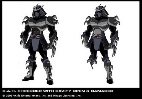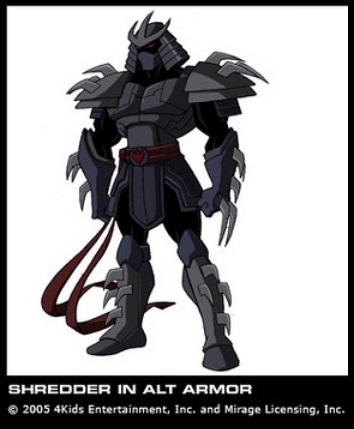 - Dans cette série, Shredder possède une très large gamme d’armures, qu’il utilise au fur et à mesure de l’histoire. Elles possèdent toutes des compétences différentes, le rendant généralement plus fort au long des épisodes, et pallient aux problèmes qu’il rencontrait avec la version précédente. Voir la galerie ci-dessous pour les différentes armures.