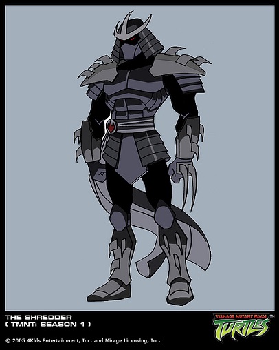 Fiche d’identité Réside : Planète Utrom, puis Japon (XVe-XXIe siècle) et New York. Espèce : Utrom. Noms : Torrinon, Kako Naso, Duke Acureds, Oroku Saki, Shredder. Armes : Son armure, ses griffes, épée de Tengu. Caractéristiques : Utrom maléfique, usurpateur de l'identité du Shredder Tengu et chef du Foot Clan. État : Détruit par le laser du Techodrome. | Première apparition Dernière apparition Doublages | ![]() |