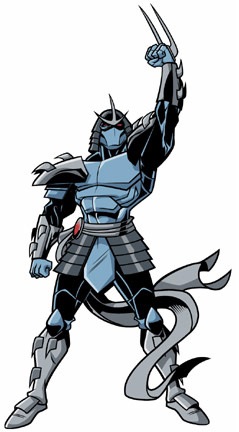 de lui. L’armure est directement inspirée de celle du personnage d’Oroku Saki, un des membres qui avait appartenu au Tribunal Ninja jadis, avant de devenir un démon. C’est dès cette période qu’il fonde le Clan des Foot et ses ninjas1. Il pourchasse les Utroms et tente de les éliminer directement à leur camp. Mais en réponse, les Utroms créent un groupe secret formé par les Gardiens, des humains qui les aident dans leur combat pendant plusieurs centaines d’années.