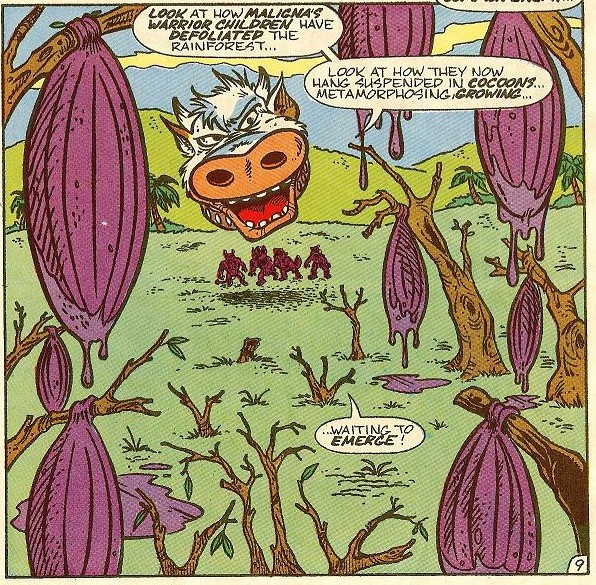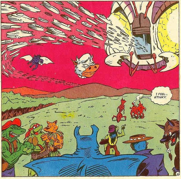 Une fois les armées de Maligna et de Krang vaincues, Cudley ramena les tortues sur Terre (TMNT A. #13), plus précisément en Amazonie pour aider leur amie April (TMNT A. #14).