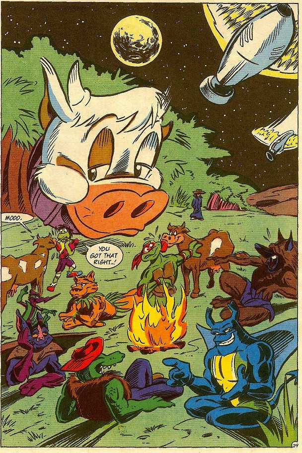 Man Ray, Jagwar et Dreadmon, qui cherchaient à échapper aux malignoids, trouvèrent la vachette. Leatherhead et ses deux compagnons crurent qu’ils lui voulaient du mal et les attaquèrent. Cudley, encore conscient, les raisonna leur demandant de s’expliquer et faire connaissance. Il savait qu’ils se battaient pour la même cause (Mighty Mutanimals Mini-series #2).