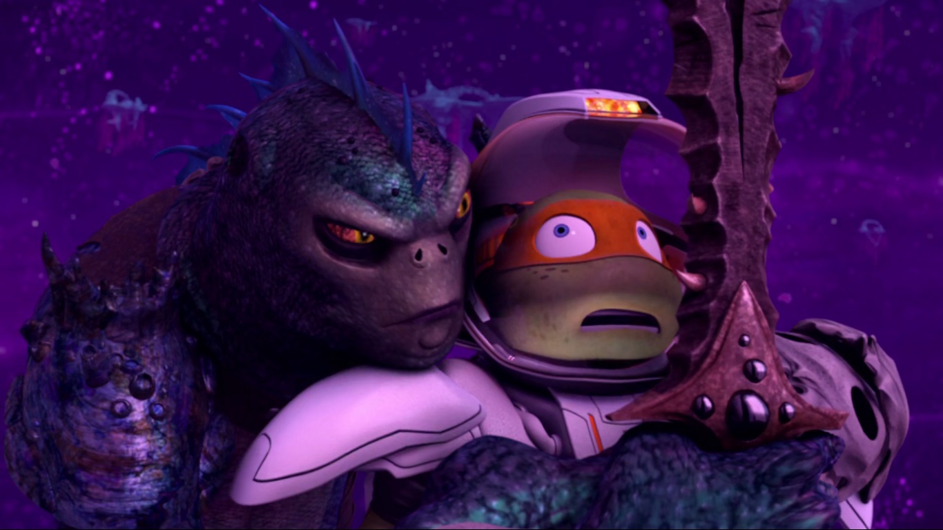 Lorsque L’Ulixes arriva à proximité du palais, les daagons escortèrent son équipage jusqu’à leur reine, voyant qu’ils étaient également des alliés des utroms. Les tortues et leurs amis purent ainsi rencontrer Hiidrala, qui ne les crut pas immédiatement et les invita à voir Cthugga en guise de test. Par la suite, au cours d’un combat contre Dregg et ses vreens, les tortues firent preuve de courage et aidèrent les gardes daagons à expulser les assaillants. Hiidrala remis alors le fragment au Fugitoid et aux tortues (L’Océan Cosmique, S4 E9).