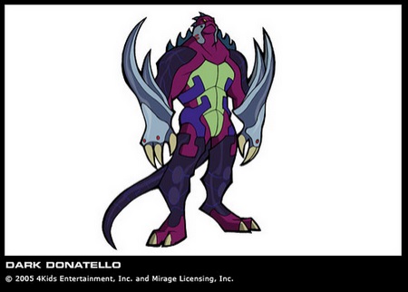 Dark Donatello forme avec ses frères l’équipe des dark turtles. Ils ont été conçus par Sh’Okanabo à partir de l’ADN des tortues, qu’il était parvenu à prendre après un de ses nombreux échecs. Il proposa à Darius Dun, fatigué des mutants, d’éliminer leur ennemi commun à l’aide de ses nouvelles créatures s’il lui versait une forte somme d’argent.