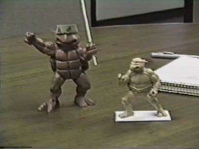 Les figurines furent dans un premier temps créées par l’atelier de Steve Varner à qui l’on doit un très grand nombre de personnages et de croquis. Il raconte « On ne m’a montré que le comics et c’était à moi de créer la propre version [du jouet]. Pour les premiers [personnages] il n’y avait pas de dessins, j’ai dû tout faire en 3D. Je me suis dit « Ok, c’est ça que je ferais si c’était exactement que je l’aimerais ». La seule différence qu’elle avait [la première tortue qu’il sculpta] une queue que nous avons retirée. Outre cela, c’était la même ».
