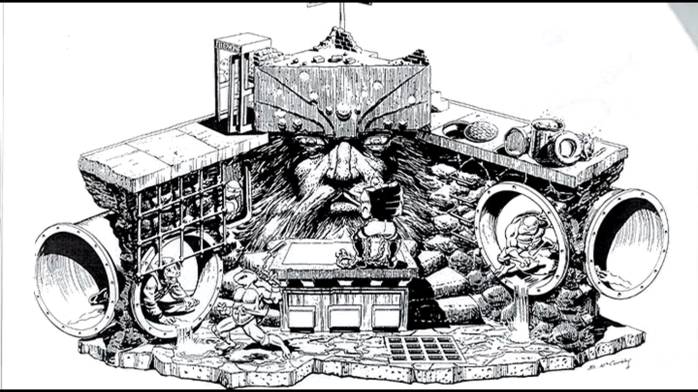 L’un des plans des concepteurs était d’aller le plus loin possible dans leurs idées, sans limites, afin ensuite de faire le tri pour voir ce qui allait être réellement réalisable. Les choses les plus folles furent imaginées. Ils voulaient également surfer sur la vague de succès de certaines grandes marques comme les Maîtres de l’Univers. Un exemple indéniable est l’un des prototypes, resté sous forme de dessin, du premier repaire des tortues. Il devait être inspiré du château Grayskull, avec un visage taillé dans la pierre des égouts. Quelque chose de complètement fou ! Finalement, ils se rendirent compte que leur projet allait trop loin, allant aux limites du surnaturel, ce qui n’aurait pas fait réellement de sens dans l’histoire qu’ils préparaient en parallèle.