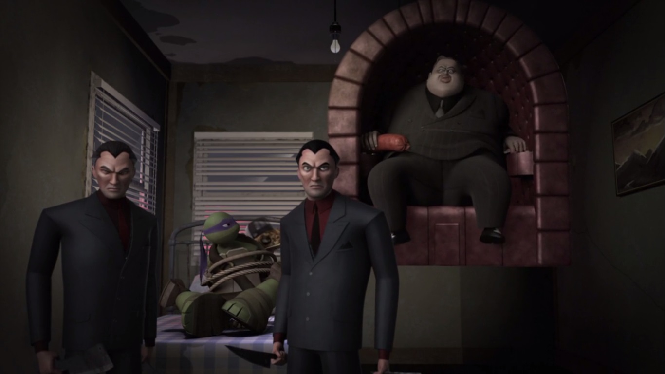 Donatello et Leonardo. Replié dans son hôtel, il assista au massacre de ses hommes dans les rues par Kavaxas. Donatello, bien décidé à se venger de la torture subie, s’attaqua au mafieux, secondé par Leonardo. Après avoir mis Vic et Vinnie au tapis, il pointa sa naginata vers la gorge de Vizioso avant de reprendre ses esprits. C’en était fini du parrain, qui fut jeté en prison comme le reste de ses hommes encore en vie (Le cœur du démon, S5 E3).
