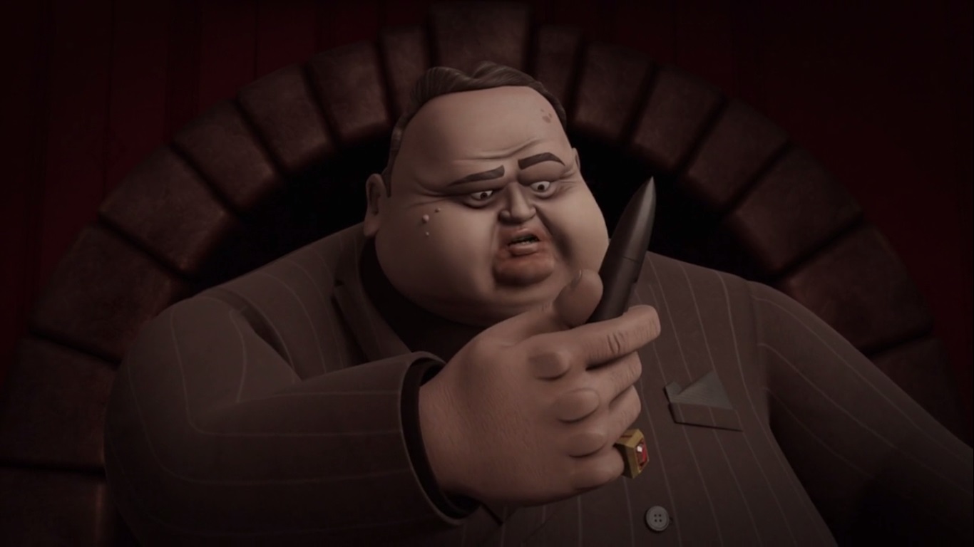 - Don Vizioso ne se déplace qu’à l’aide de son fauteuil volant. L’homme est trop gros et possède de trop petites jambes pour marcher de lui-même comme le rappelle Ciro Nieli dans son livre The art of the TMNT (p. 119).