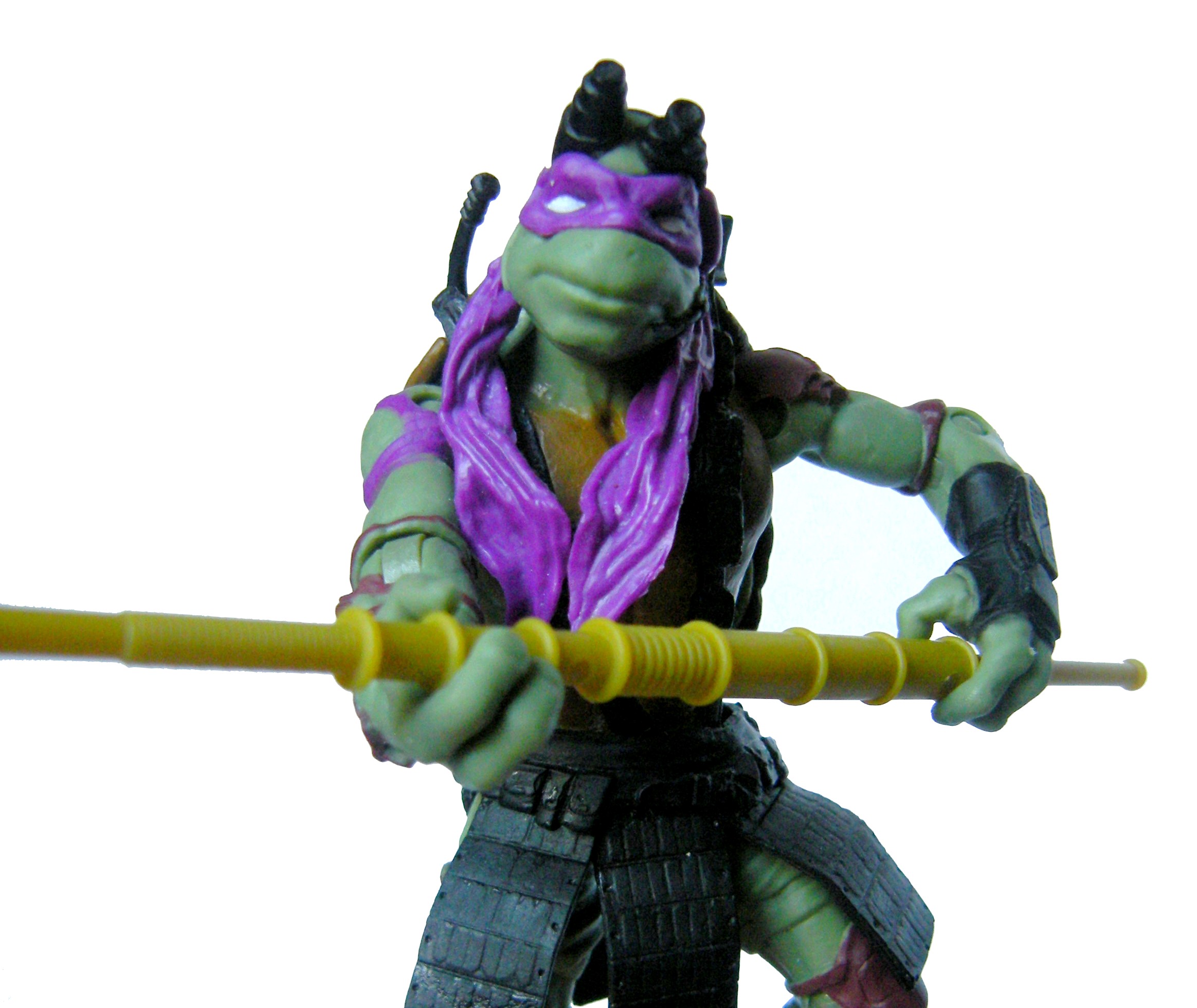 La sculpture générale de la figurine est plutôt bonne. Deux types de plastiques sont employés, un rigide pour le corps, et un plus souple pour certaines parties rapportées, comme les tissus du buste, la ceinture et le bandana. Comme les figurines de la première série, Donatello a sa peau texturée de quelques écailles ci et là.