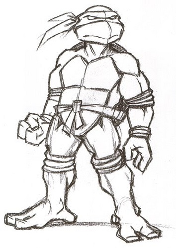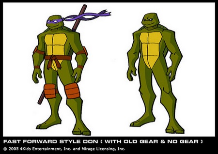 7.La ceinture, les bandes, les protections aux genoux et aux coudes sont peintes en brune (cuir), et non plus dans la couleur de la tortue. Peter Laird lui-même considérait cela comme trop « idiot pour l’ambiance que nous voulions donner à la nouvelle série ».