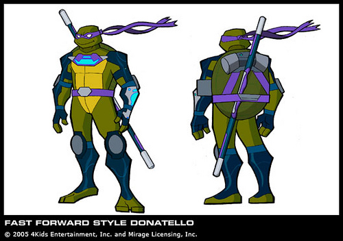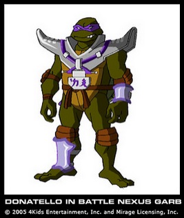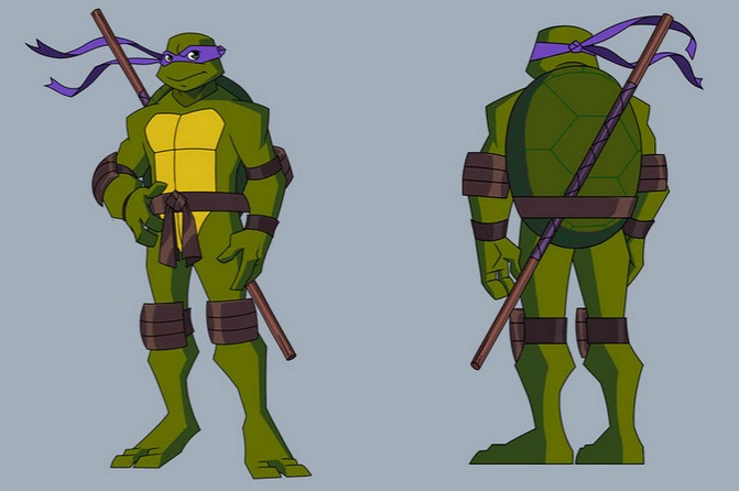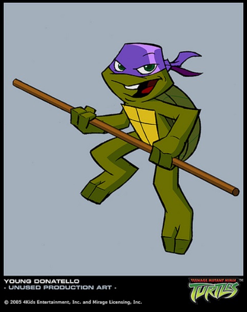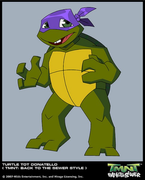 Fiche d’identité Réside : Égouts de New York. Espèce : Tortue mutante mâle. Caractéristiques : Tortue mutante amatrice de technologie, bricolage et informatique. Armes : Bâton bō. | Première apparition Dernière apparition Doublages | ||