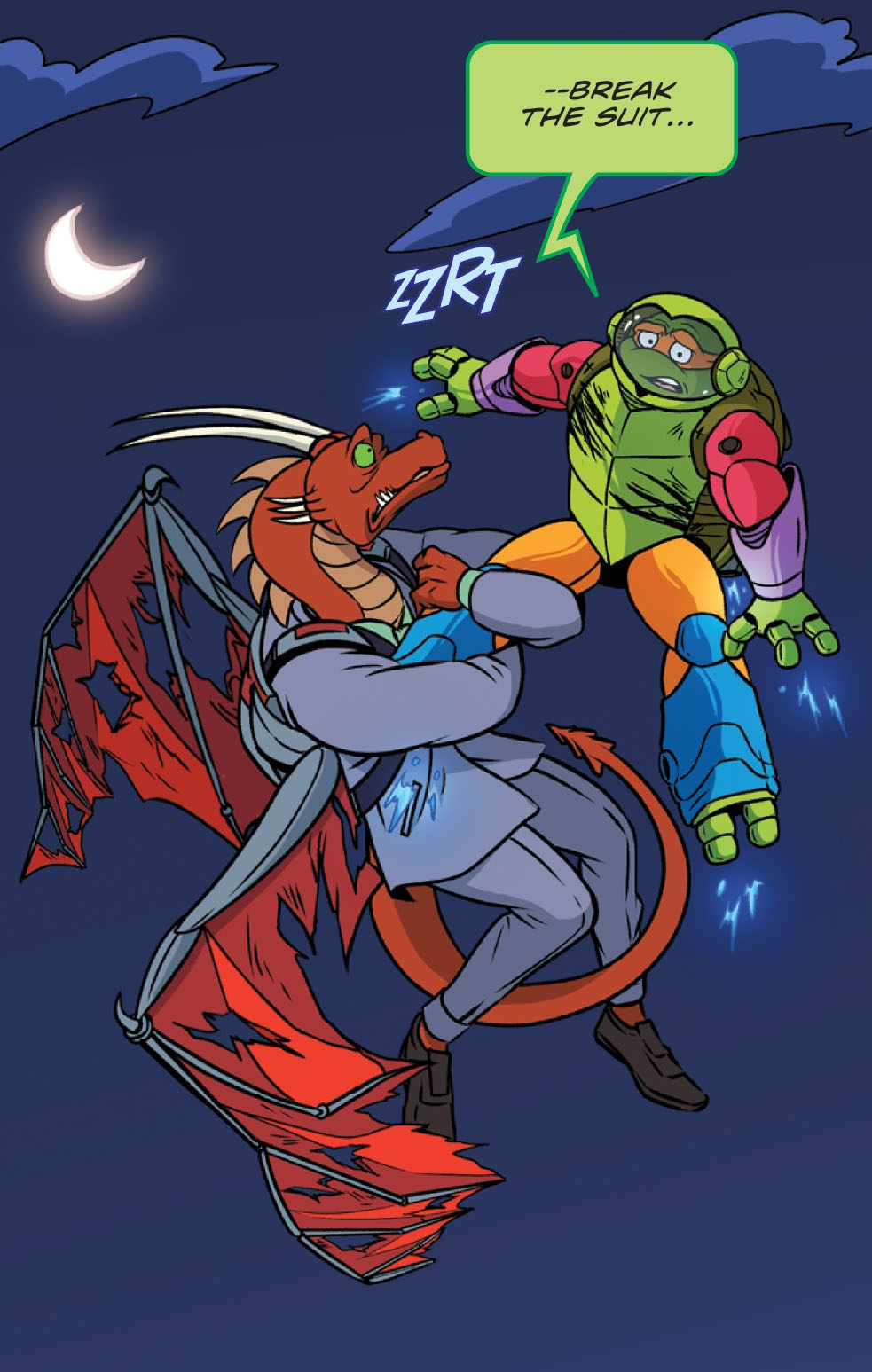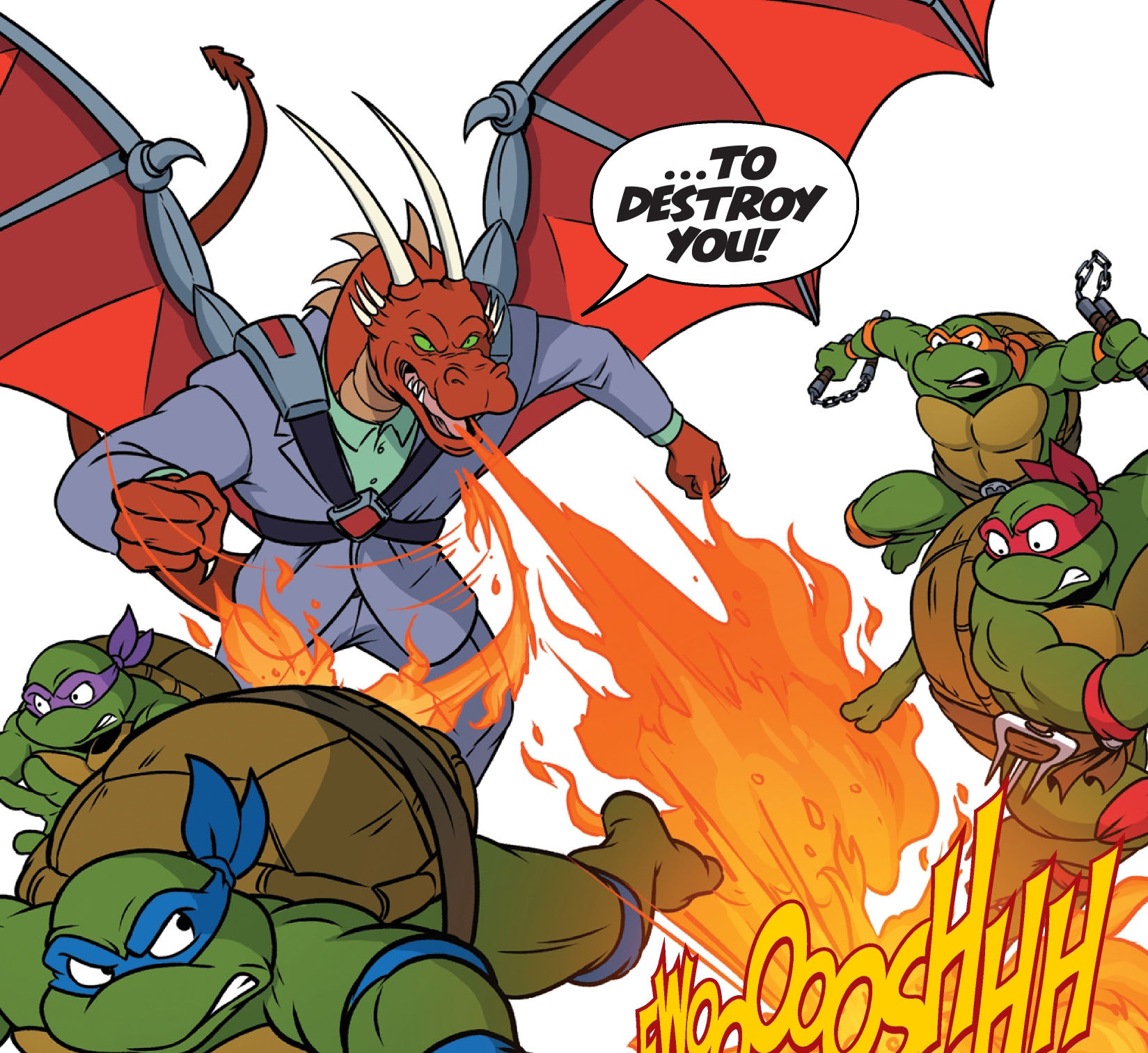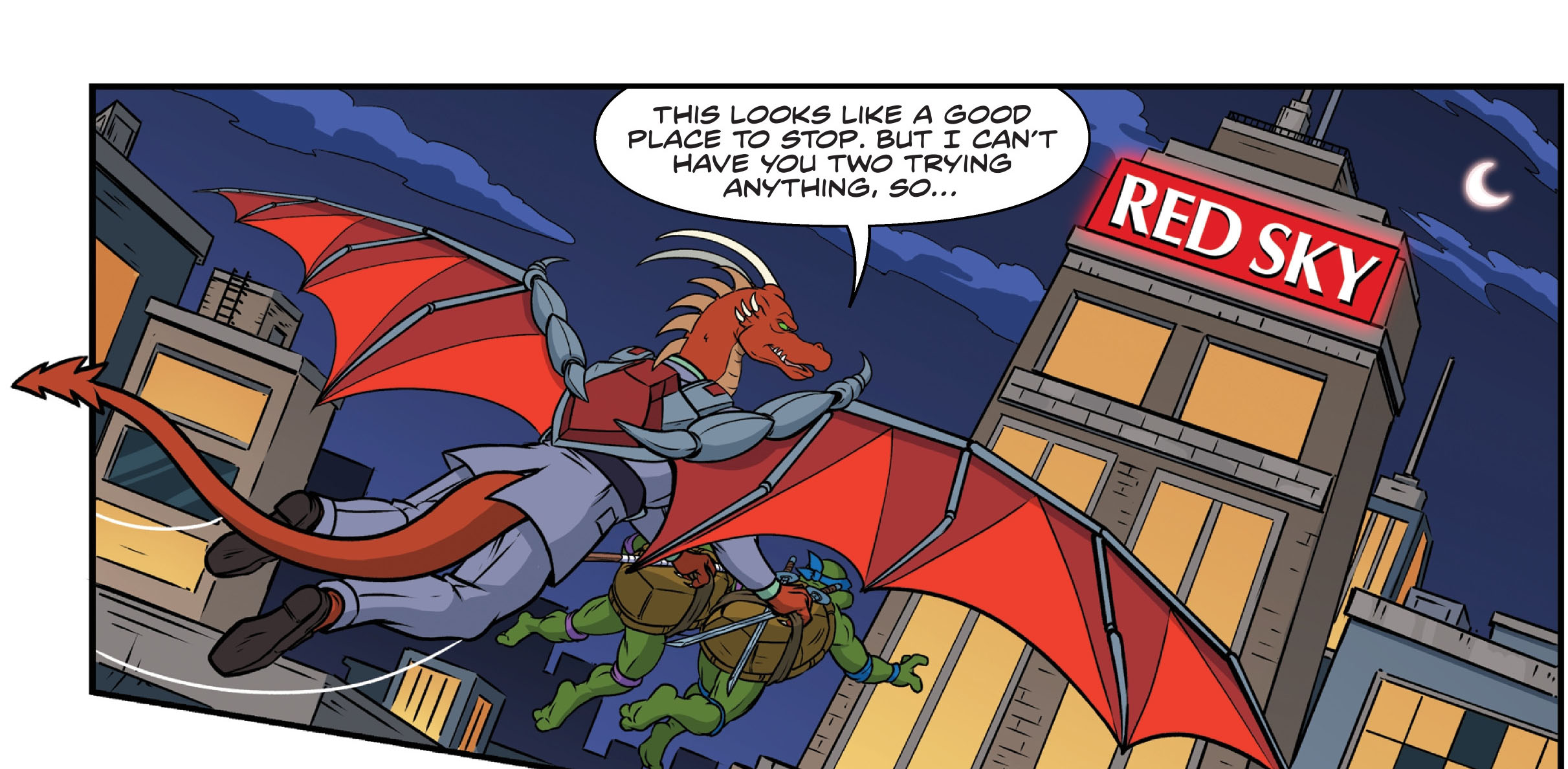 Ainsi, Drako saisit sa chance et partit pour le centre-ville arrêter les ninjas. Face à leur résistance, il décida de les séparer en deux groupes, en capturant Leonardo et Donatello. Il les conduisit au sommet d’une tour et invita les deux autres ninjas à les rejoindre. Il s’agissait d’un piège destiné à tous les capturer et pouvoir leur laver le cerveau. Mais contre toute attente, Michelangelo arriva dans une armure hi-tech et affronta Drako dans les airs. Leurs dispositifs de vols respectifs furent détruits et ils tombèrent dans l’East River. Drako parvint à prendre la fuite (SMA #27).