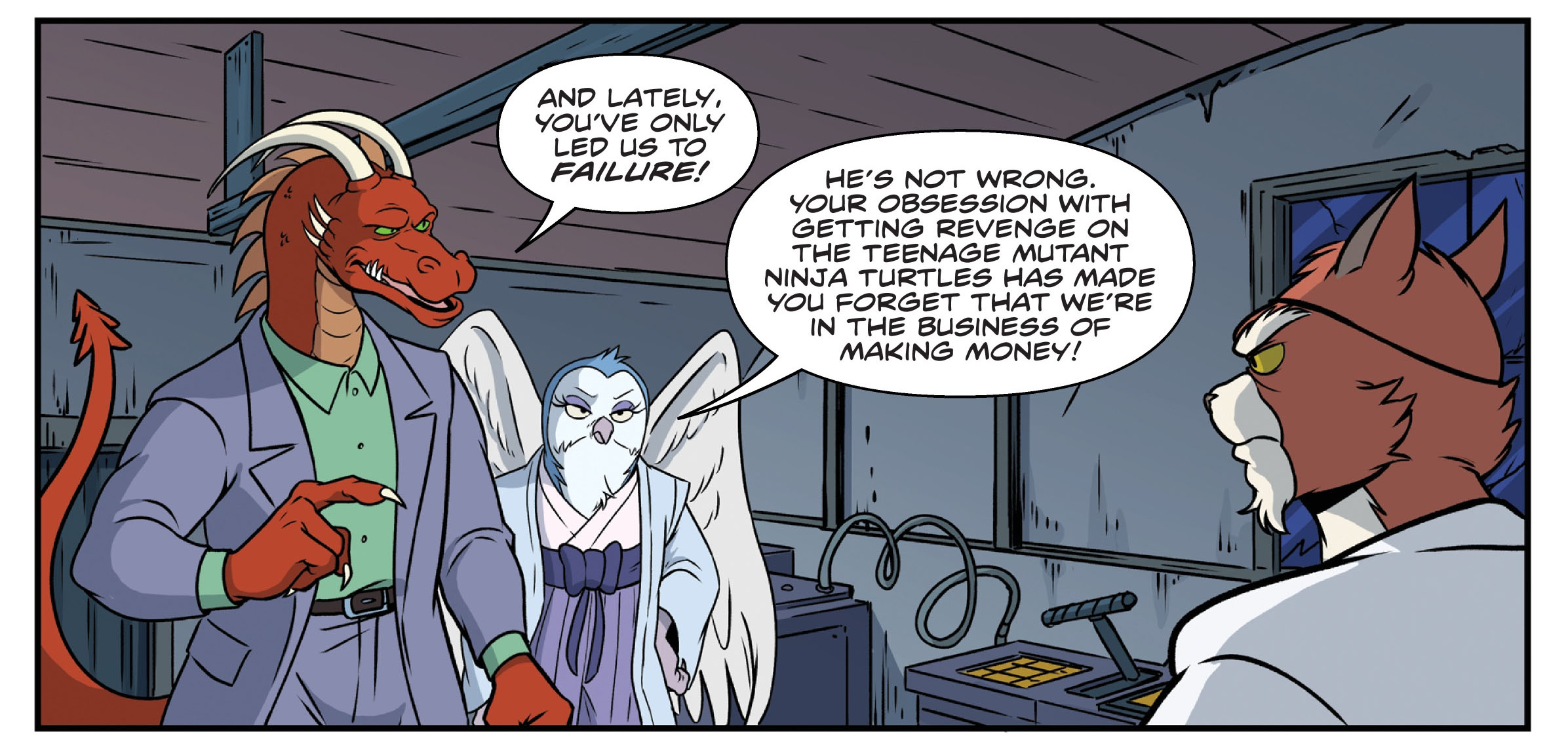 Drako était l’un des membres du Pantheon. Arrogant et avide de pouvoir, il n’hésitait pas à critiquer les décisions de Old Hob, espérant un jour pouvoir prendre sa place. Le chat était obnubilé par les Tortues Ninja, notamment après s’être allié à Krang. Ce dernier proposa aux membres du Pantheon de se débarrasser des tortues. Le vainqueur prendrait la tête de la famille.