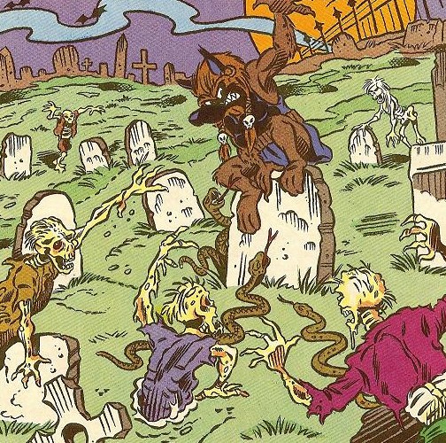 Là, Dreadmon avait commencé une vie de voleur et déroba à un touriste australien un talisman qui lui conférait une vitesse incroyable. Mais lorsqu’il devint adulte, il se changea en homme-loup. Face aux vols de poules pour survivre, la population commença à le chasser. Il partit alors pour l’Amazonie, en bateau, pour s’y réfugier et y vivre paisiblement (Mighty Mutanimals Mini-series, part. 2).