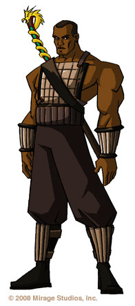 Fiche d’identité Réside : Afrique. Espèce : Humain. Arme : Une épée. Caractéristiques : L'un des huit Acolytes, grand ami de Leonardo. | Première apparition Doublages | ![]() |