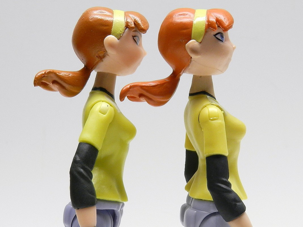 Par ailleurs, la figurine d’April est connue pour une petite particularité. En effet, sa figurine ; la subtilité se trouve au niveau des cheveux. Sur certaines figurines, ses cheveux sont roux, sur d’autres, la texture apparait plus matte et tirant vers le brun. Son serre tête est quant à lui toujours jaune. Par ailleurs, son maillot jaune a quelques nuances entre ces deux versions. Est-ce fait exprès? Un simple changement dans la peinture?