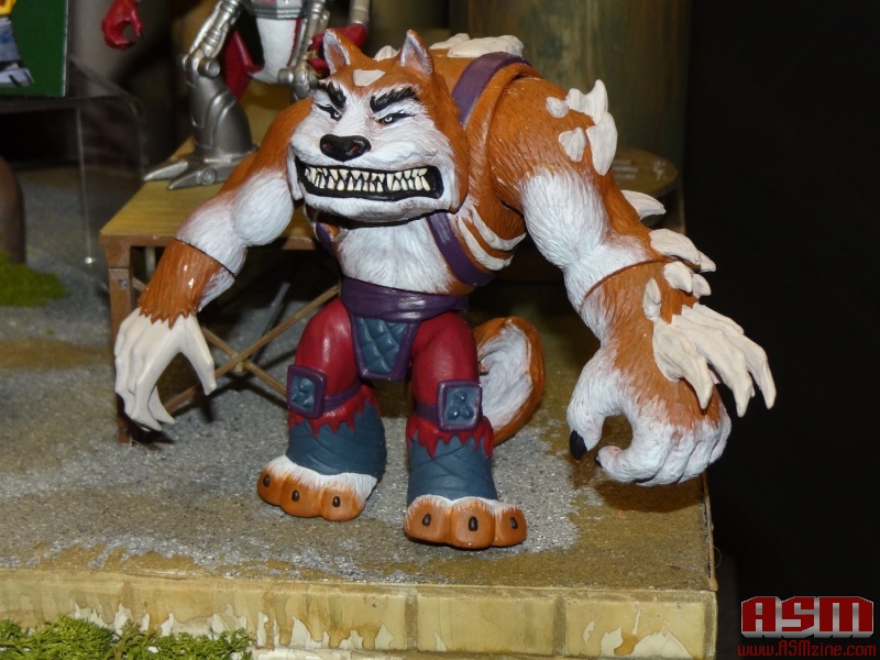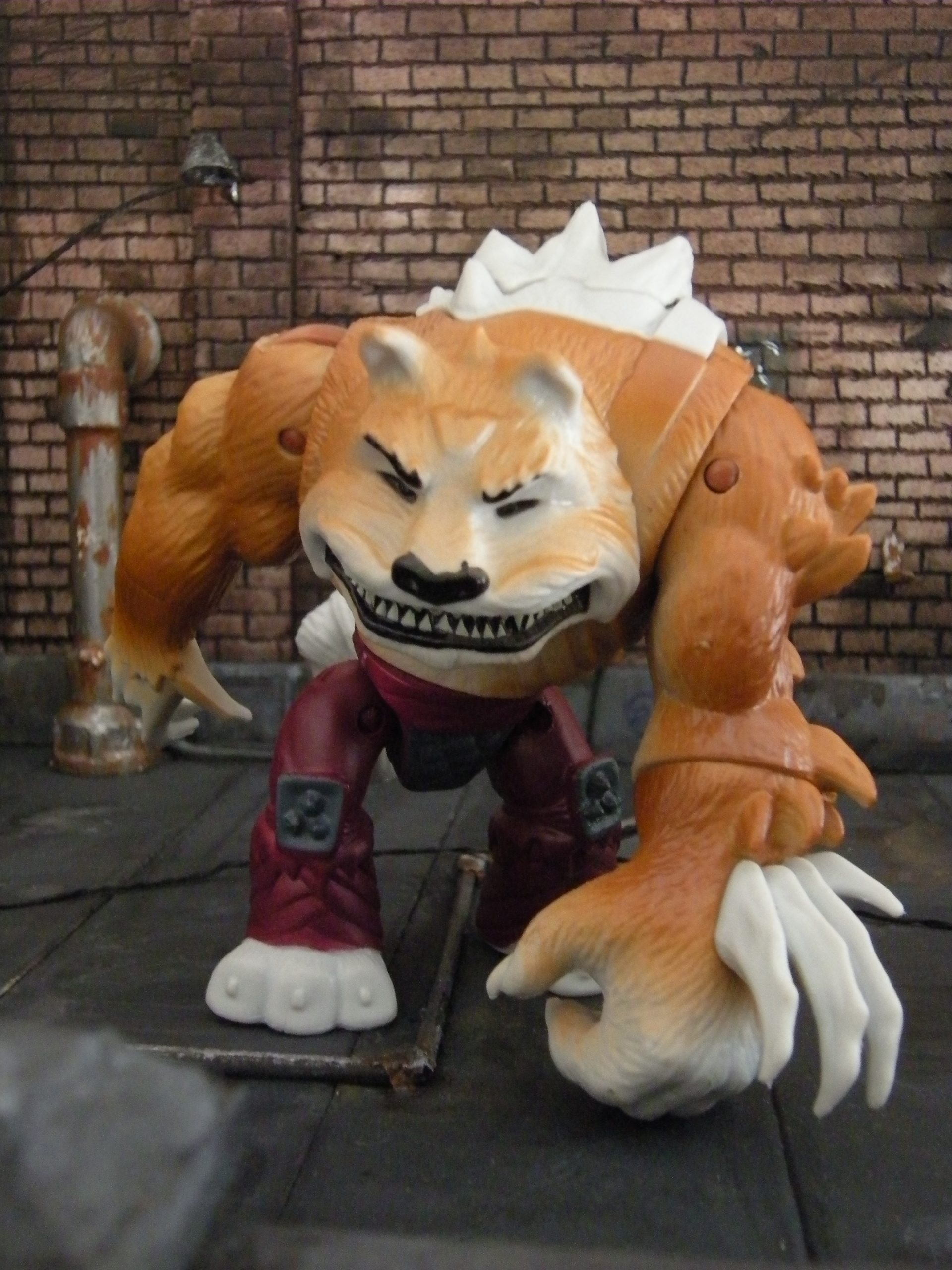n Dogpound est une figurine de plus au potentiel énorme, et complètement gâchée par la peinture, qui avouons-le, est catastrophique. Son modèle présenté au Toy Fair de 2012 est très attirant. L’ensemble de ses détails sont représentés, et possède une couleur de poil bien plus soutenue. Sa figurine est finalement très peu peinte, et très claire. L’ensemble donne une impression d’inachevé. Sa sculpture rattrape beaucoup ce défaut, malheureusement il perd encore une fois sur un autre détail : sa taille. Dogpound est censé être un véritable co