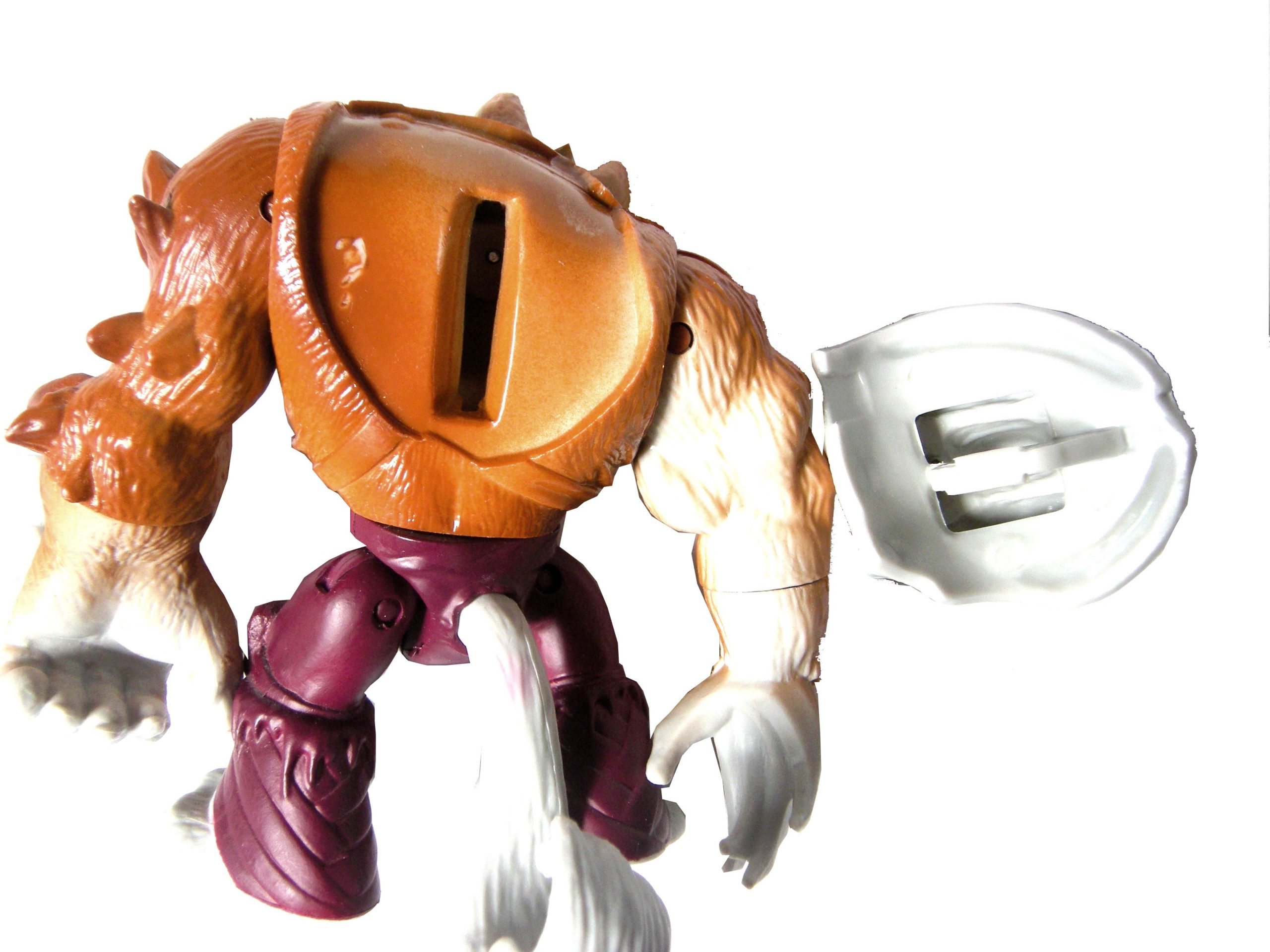 Son corps est recouvert de poils très finement sculptés. La série de piques sur sa main gauche, ainsi que ceux dans son dos sont rapportés, dans un plastique moins rigide que le reste du personnage. Les pics dans son dos forment une sorte de plaque qui y est collée. Il est possible de la décrocher, elle se replacera sans soucis. L’intérieur du dos est entièrement creux au delà de la fente de fixation.