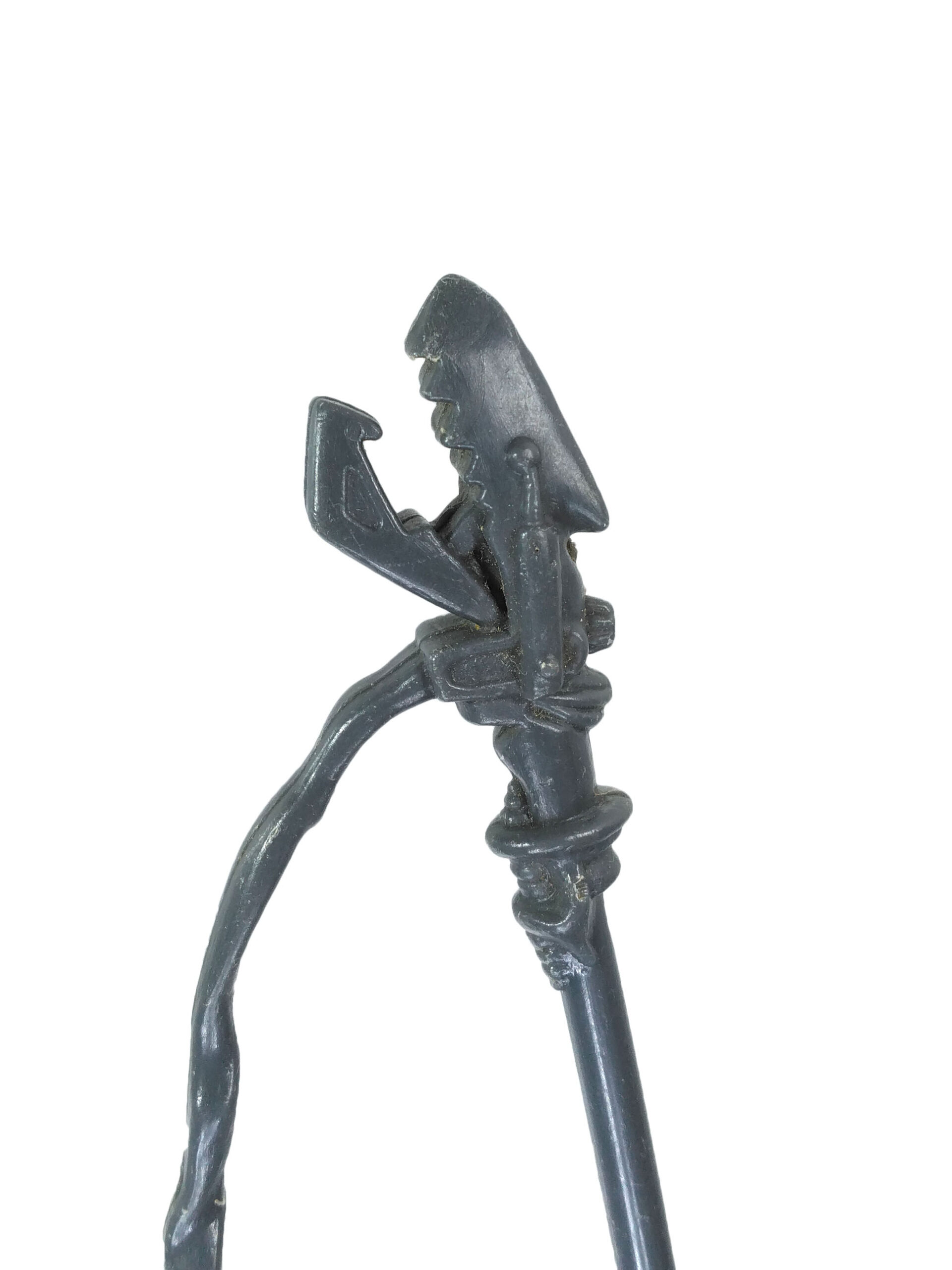 L’autre arme propre au soldat est une masse tenue au bout d’une longue tige de plastique. Celle-ci peut être relativement fragile, faites attention ! Le manche possède quelques détails montrant une technologie extraterrestre. L’accessoire a été largement revu à la baisse entre son prototype initial et le modèle final. Probablement pour des questions de coûts, à l’instar des cordes des nunchakus de Michaelangelo.