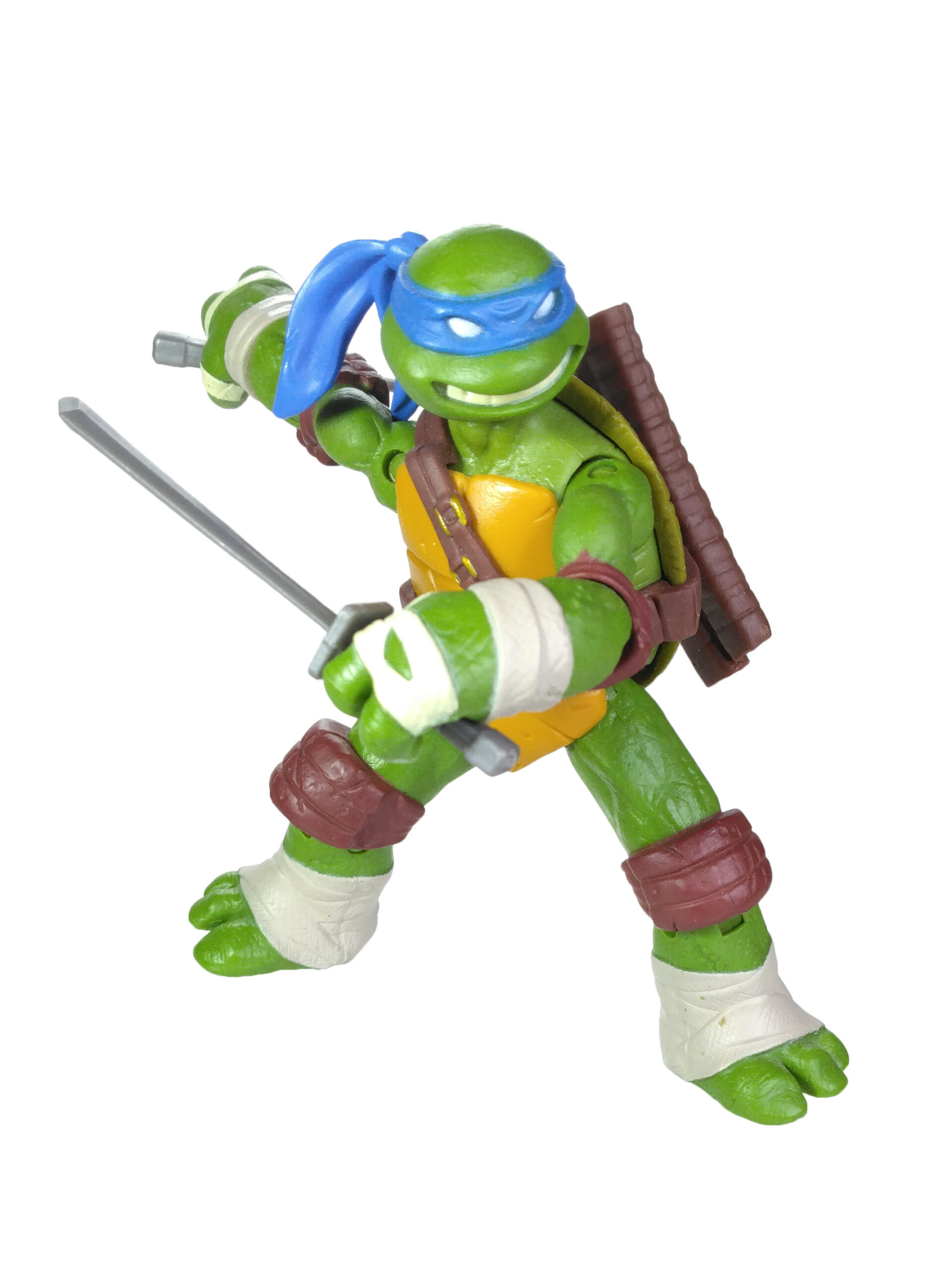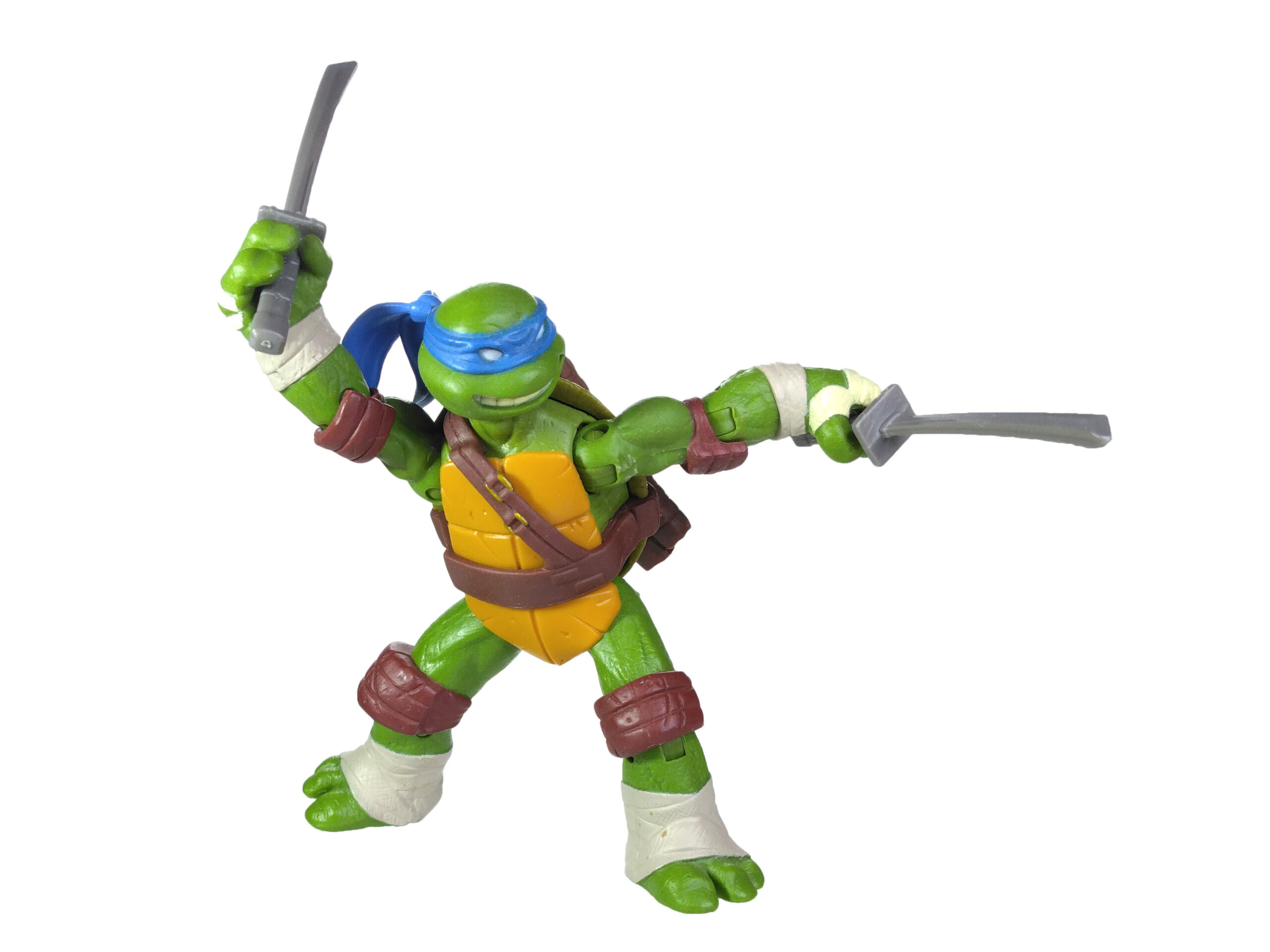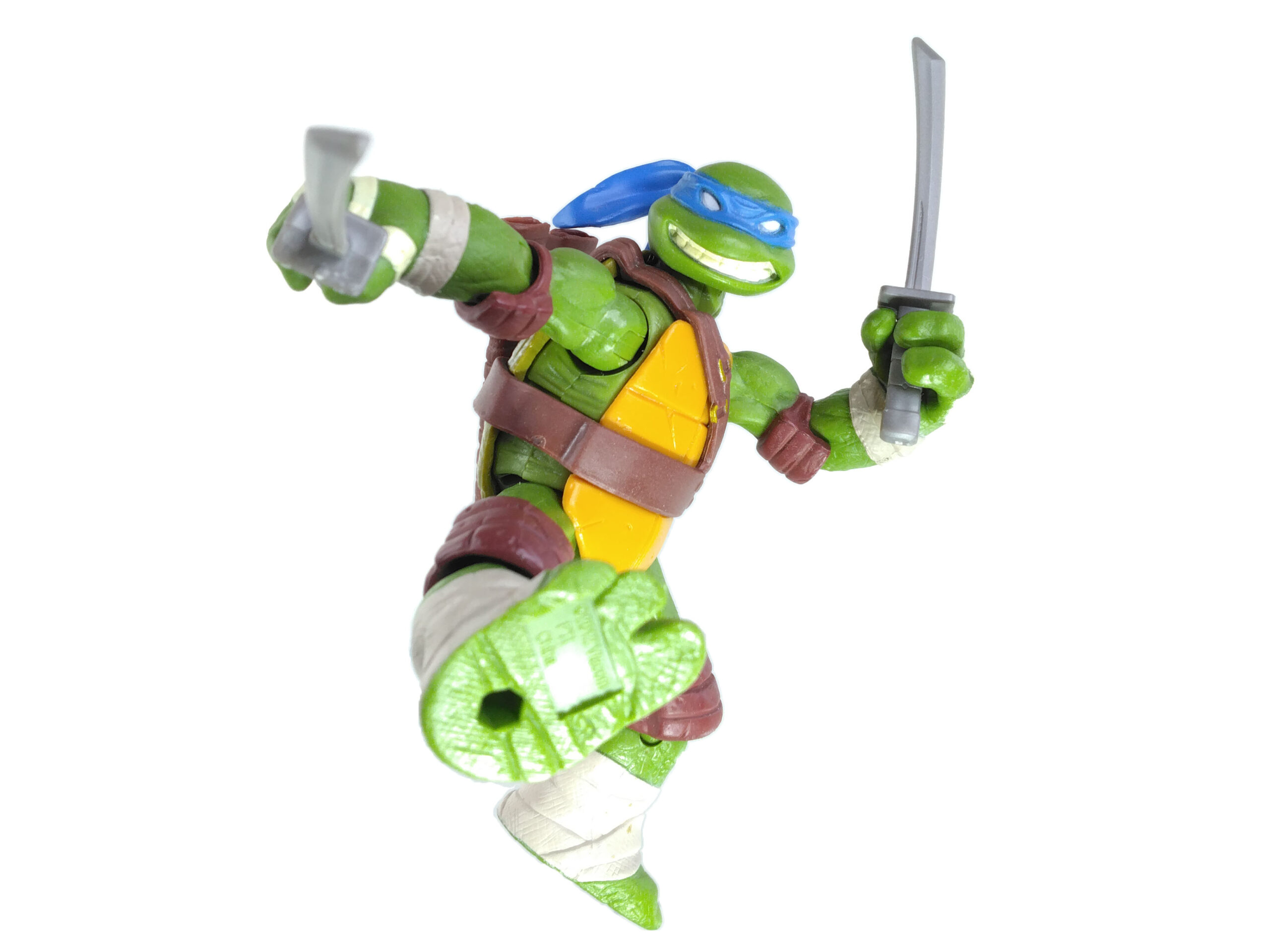 Les articulations de Leonardo sont très bonnes, comme pour toutes les tortues de cette série. On peut aisément lui donner de très belles positions, jonglant entre ses mouvements et ses armes. Une première chez Playmates Toys, jusqu’alors plutôt connu pour ses figurines assez rigides.