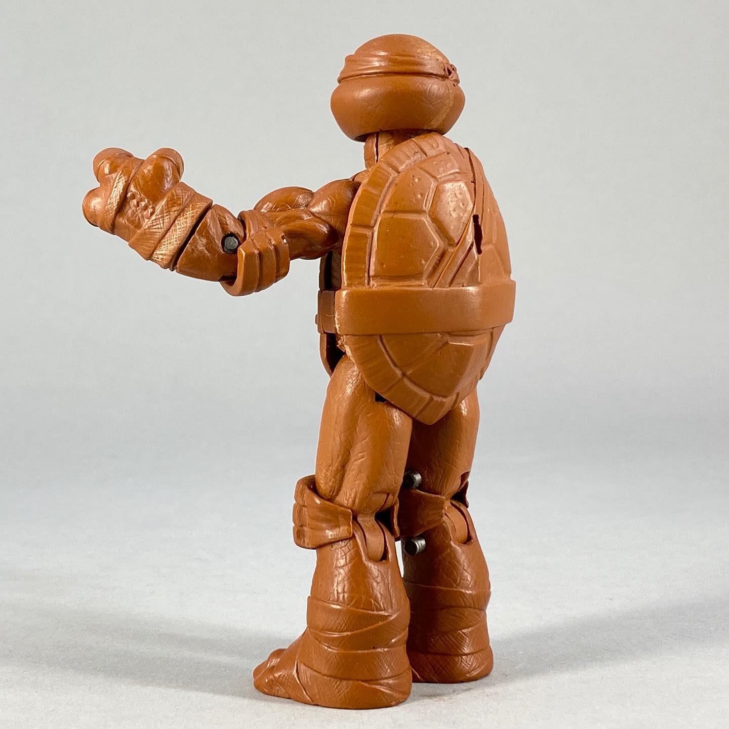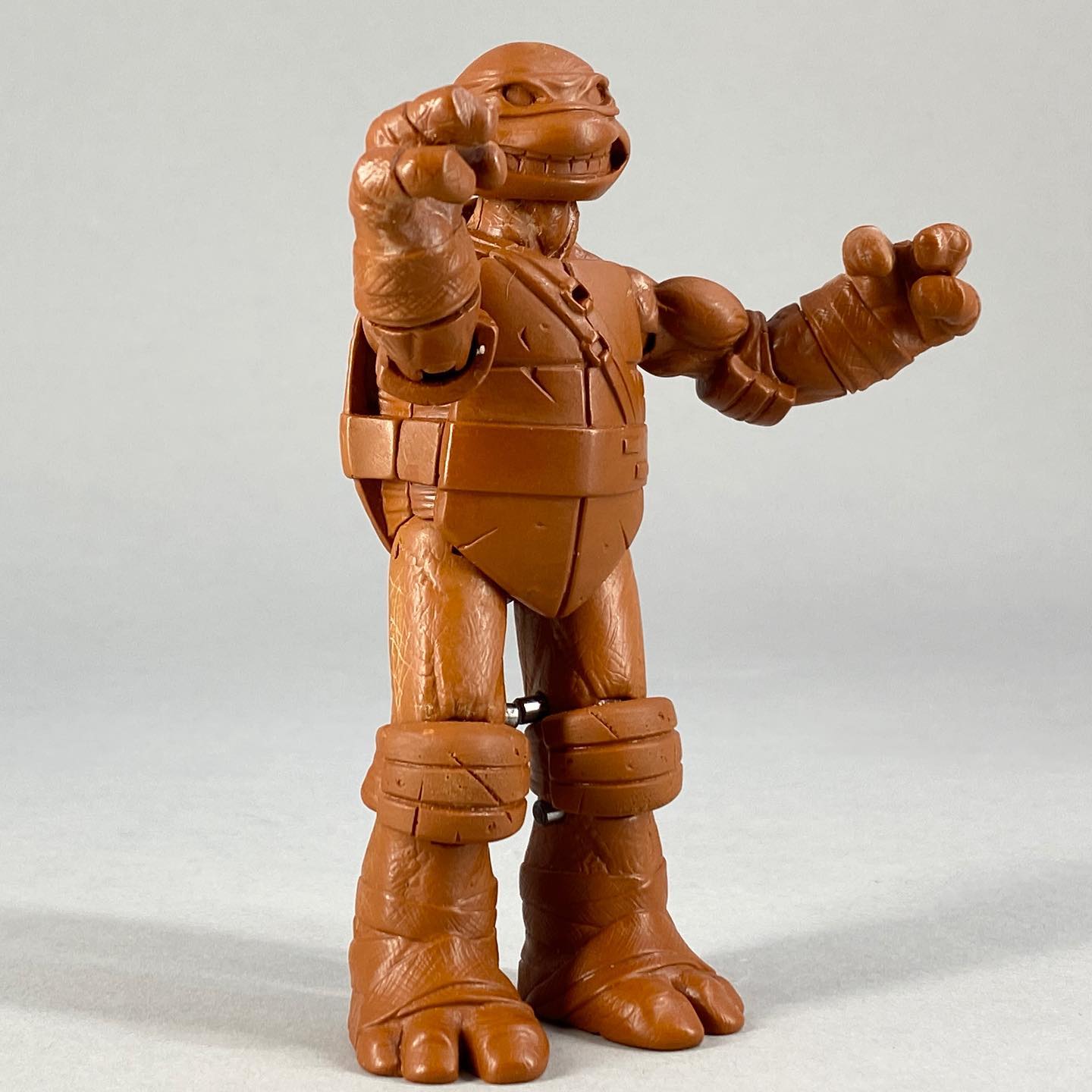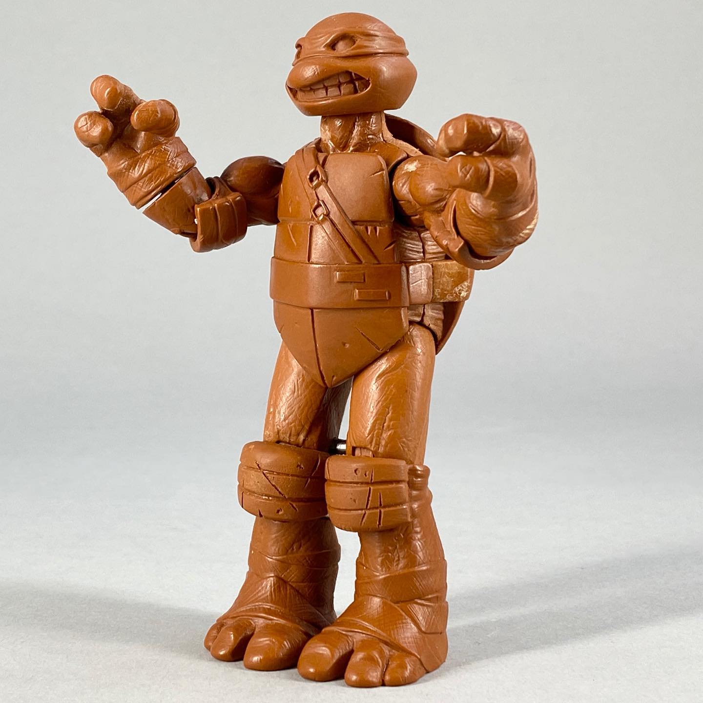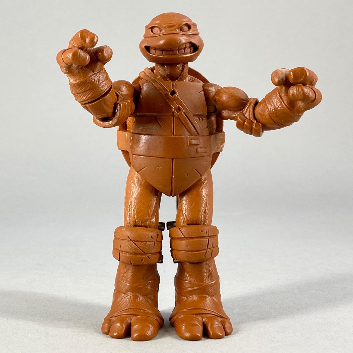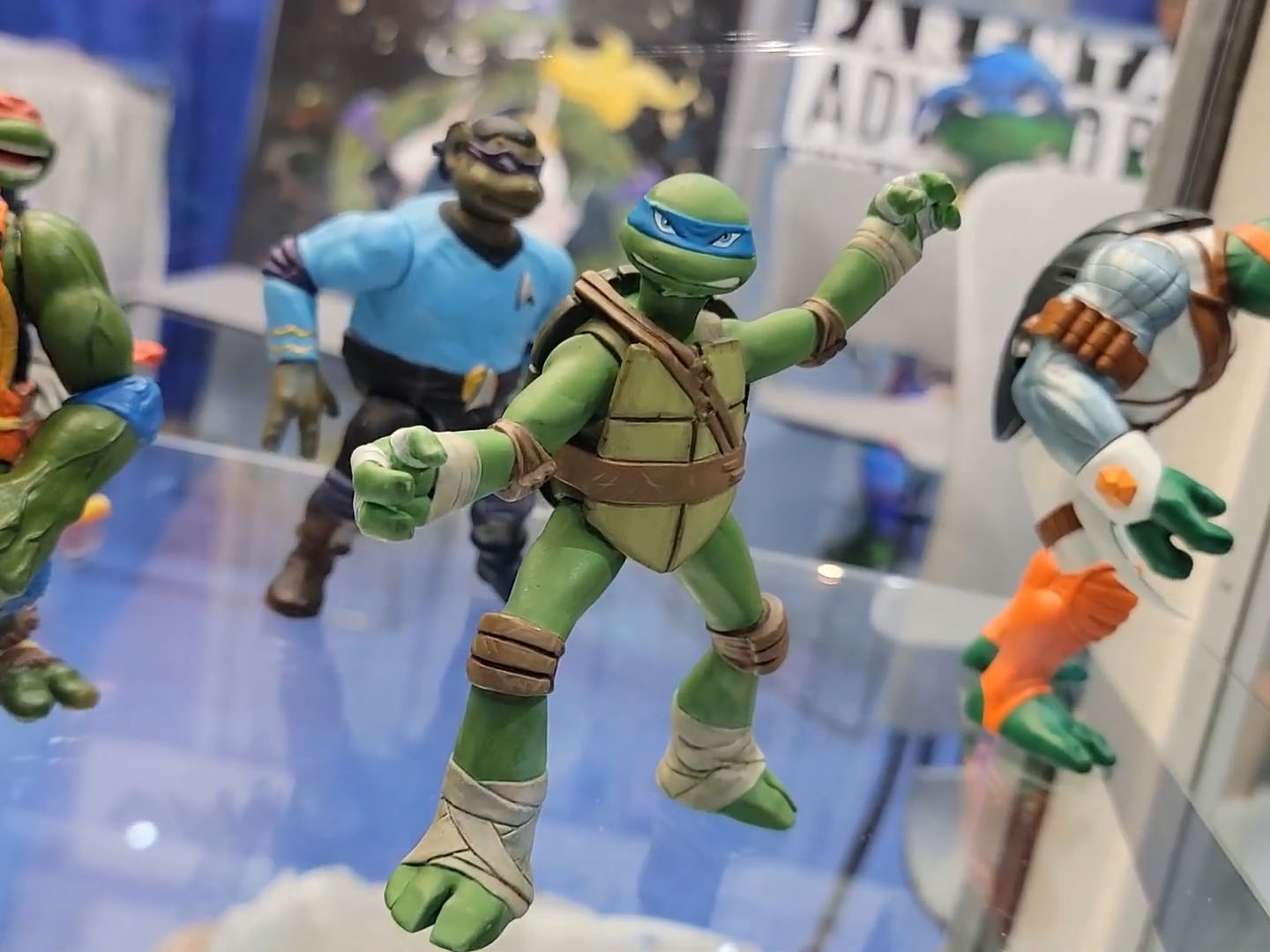 Les tortues étaient strictement identiques aux versions commercialisées à l’automne. Toutefois, la peinture employée était bien plus détaillée, avec des lavis permettant de mettre en valeur les nombreux reliefs de ces figurines. Seules les armes principales des tortues étaient présentes, elles aussi avec une peinture de niveau supérieur.