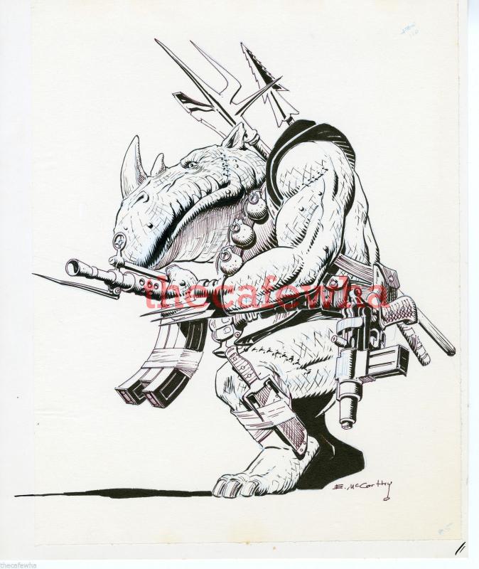 Parallèlement, la production du dessin animé était lancée. Fred Wolf, à la tête de la Murakami-Wolf Films, suggérait que de nouveaux mutants soient introduits dans la série afin de renforcer l’attraction des enfants. Handy et le grand Mark Taylor, recruté pour donner plus de relief à la gamme, sont allés jusqu’à demander l’aide de Kevin Eastman et de Peter Laird dans ce but. Ainsi que l’artiste freelance Errol McCarthy. Ensemble, cette équipe remarquable mettait au point autour de mai 1987 quelques nouveaux bad guys comme un cochon ninja, ou encore un chien revêtu d’une armure de samurai.