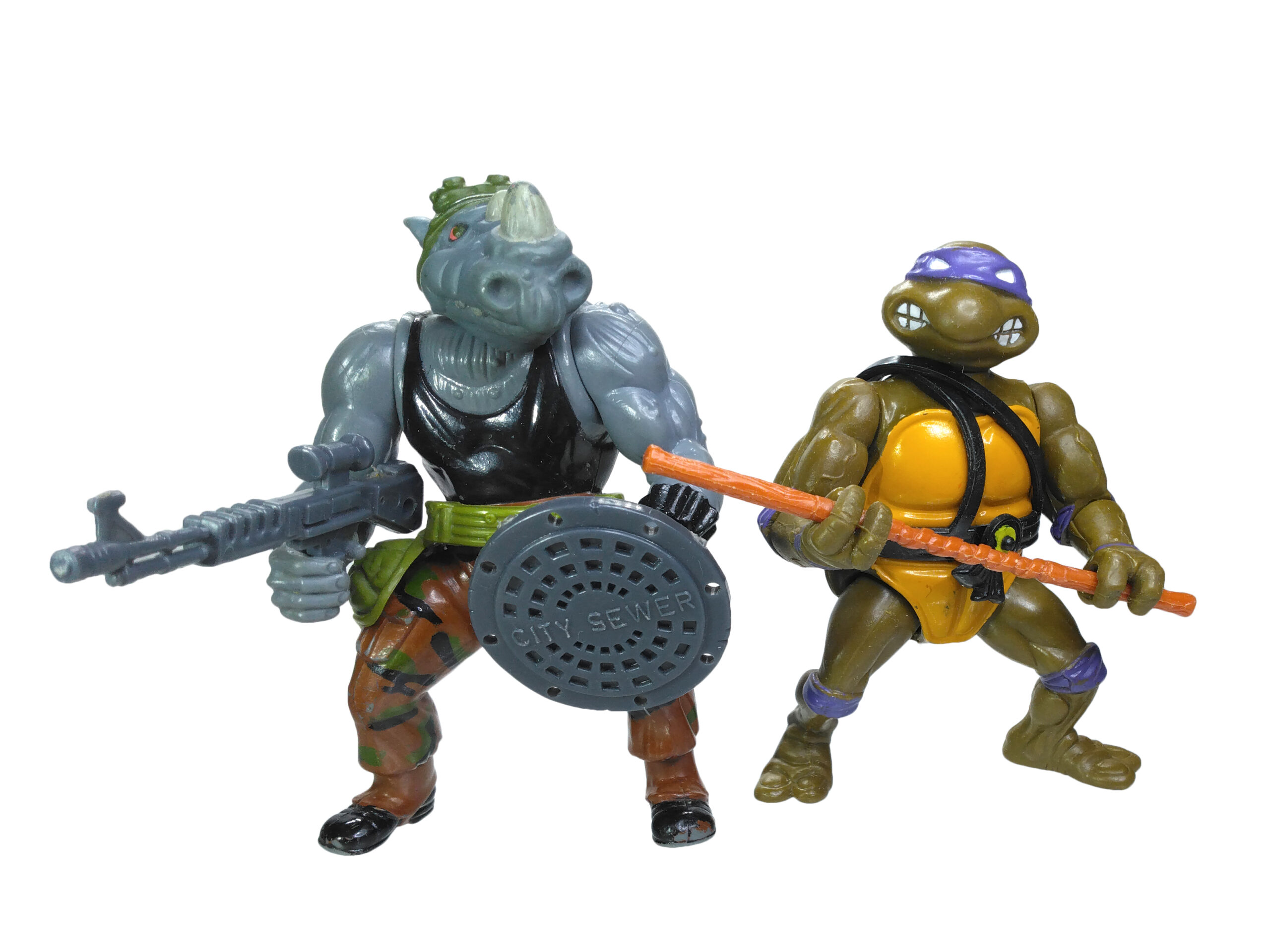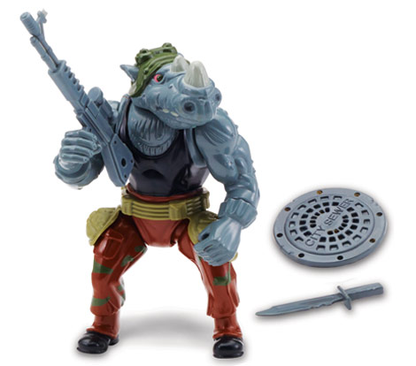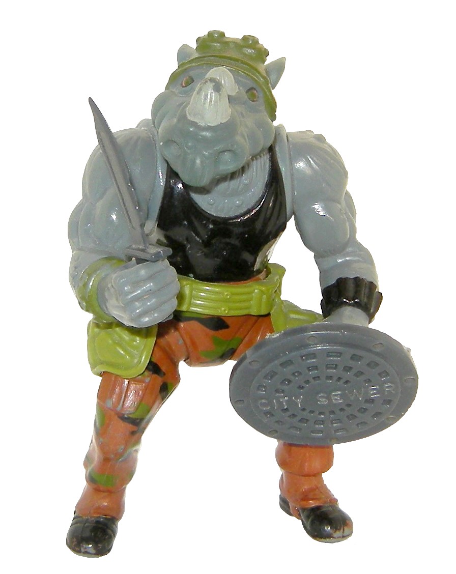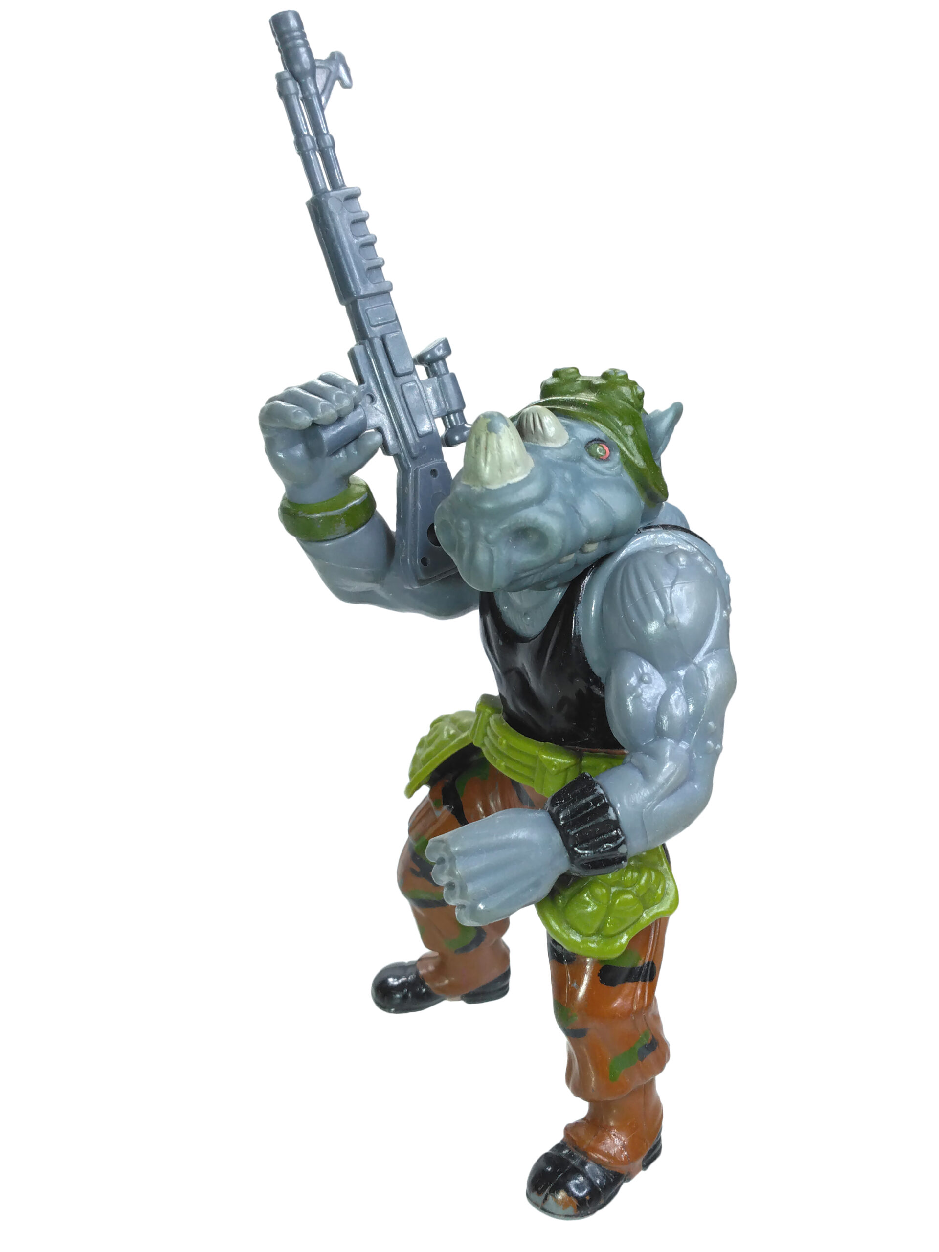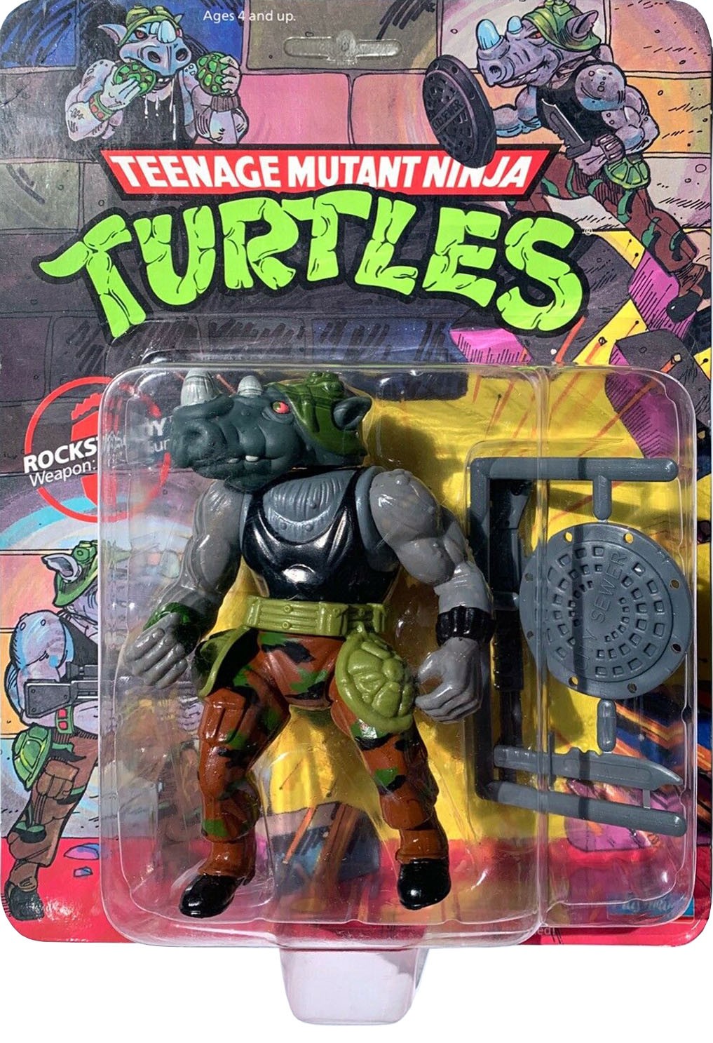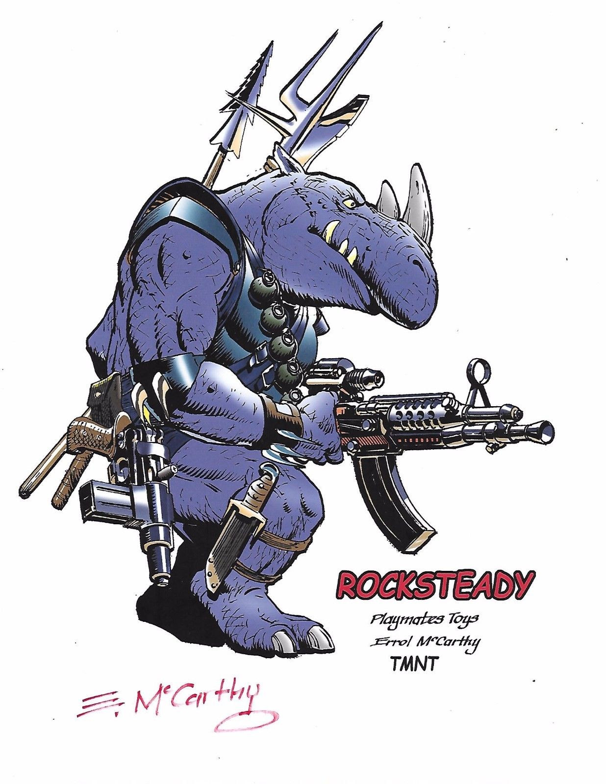 Rocksteady est l’un des personnages qui a le plus été retravaillé des dix premières figurines. Si l’équipe de Playmates Toys savait parfaitement que Shredder et les Foot soldiers seraient de la partie, elle n’avait pas la moindre idée, initialement, d’où conduire l’histoire. Ainsi, de très nombreux personnages ont été conçus dès janvier 1987. John Handy, en charge des designs proposait des ennemis que tout le monde était susceptible croiser à tout moment dans les rues de New York. Au menu, un joueur de football, ou encore un biker, un pizzaïolo. De plus, ces personnages se distinguaient du commun des mortels par leur armement, propres à leurs activités et qui se voulait loufoque.