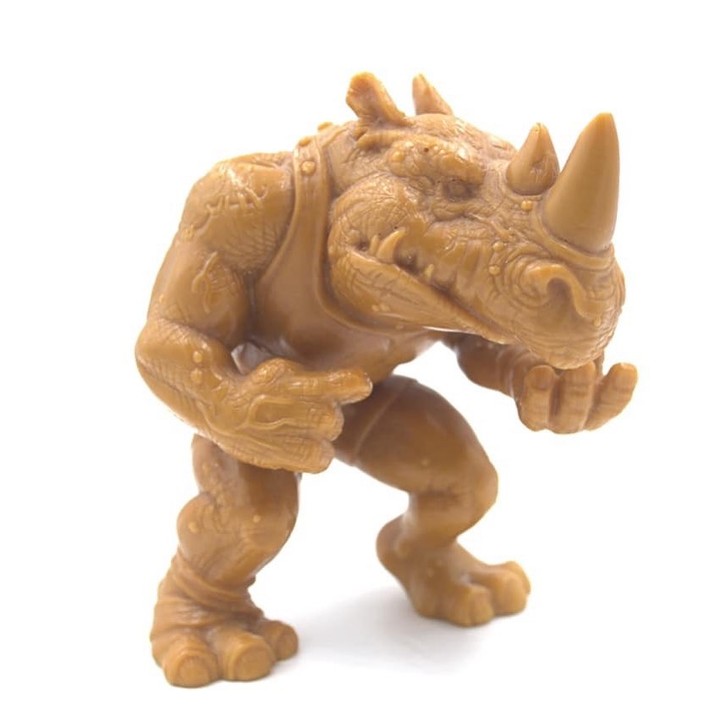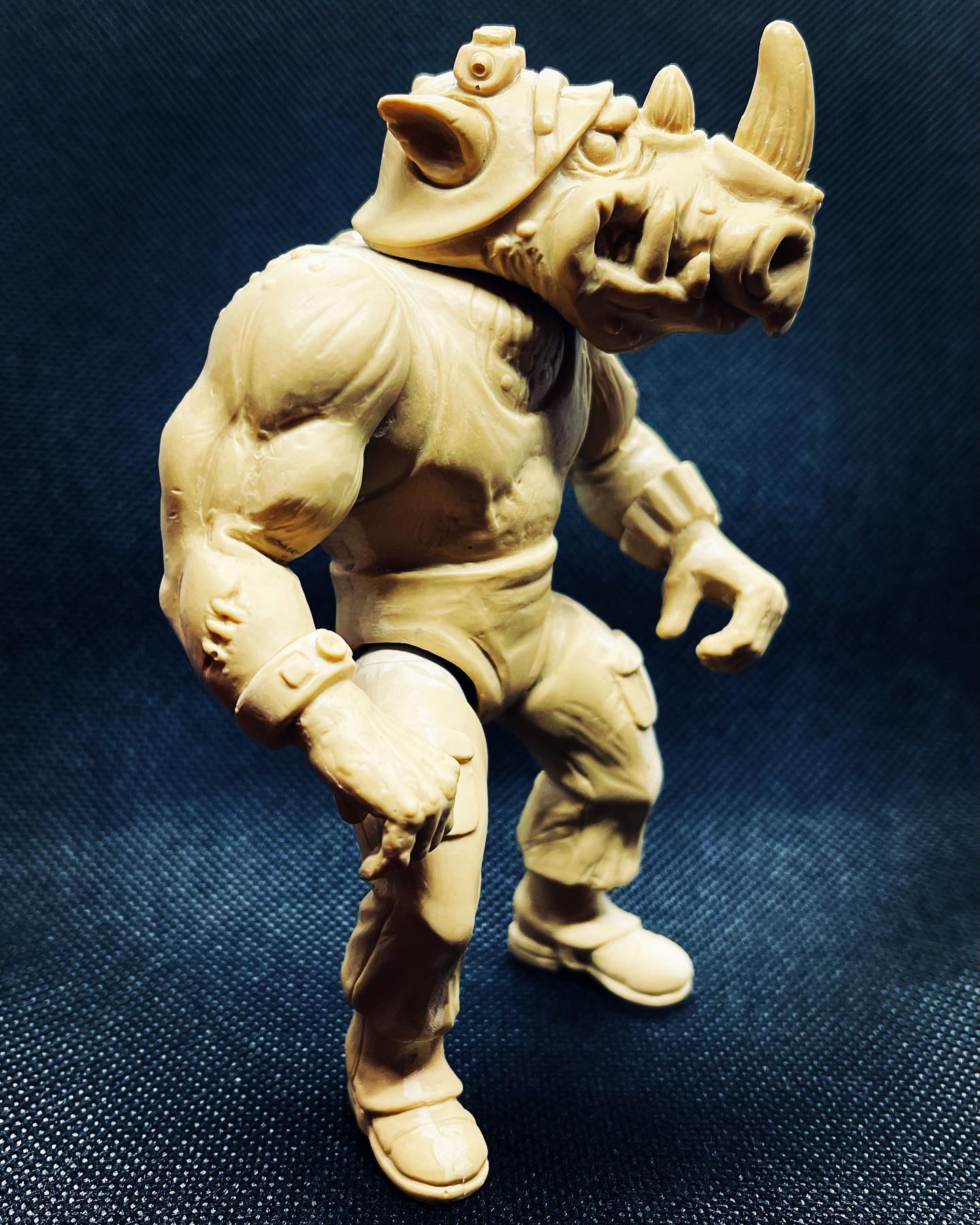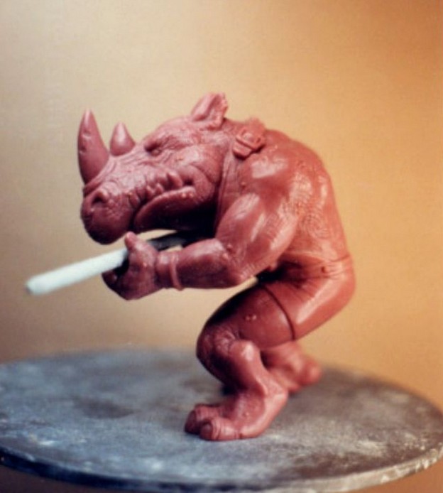 La taille de Rocksteady a été revue à la baisse. En effet, un premier modèle en cire du rhinocéros avait été proposé lors de l’une des réunions au siège de Playmates (Fig. 9 à 15). Sculpté par Scott Hensey, il avait alors été décidé de diminuer la taille des personnages et leur niveau de détails pour amortir les coûts de production.