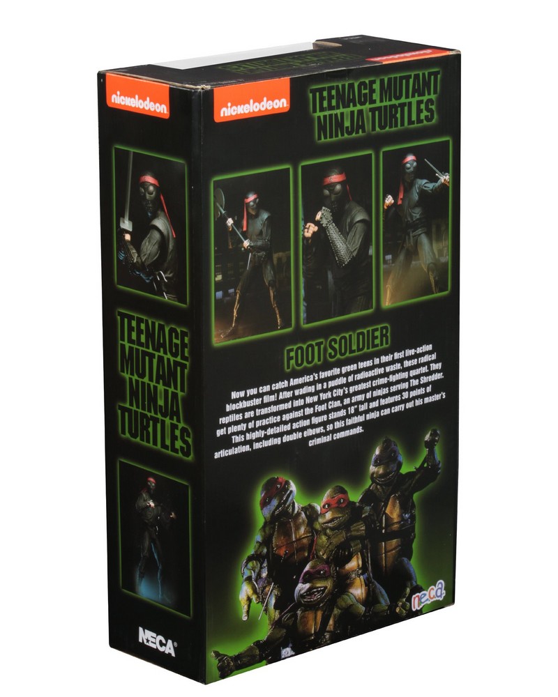 La figurine du Foot soldier a été teasée par NECA au cours du San Diego Comic Con 2017 à travers une pancarte l’annonçant ainsi que Shredder dans la continuité de la gamme du film de 1990.