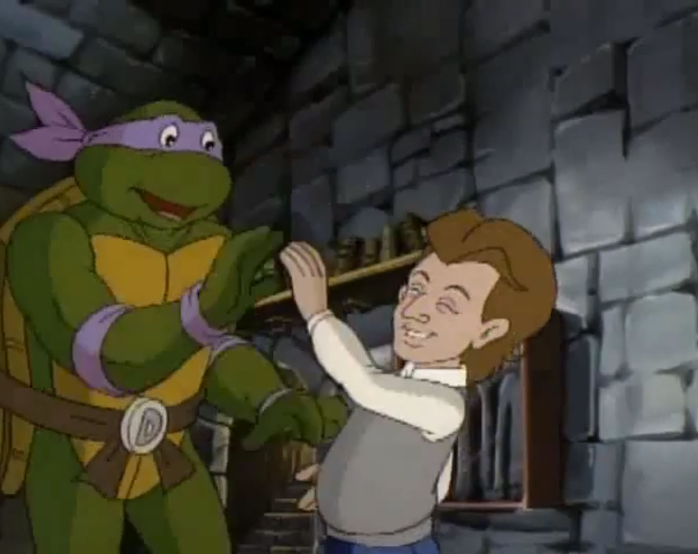 Mais l’idole de Foster, le professeur Filo Sopho, eut vent de cette création et la lui déroba pour exterminer la vie sur Terre. Les tortues et l’adolescent partirent à sa recherche. Le savant fou se cachait dans un nouveau laboratoire, sous la ville. Le génie prometteur parvint à déjouer les pièges de son idole et avec l’aide de Donatello, ils réussirent à détruire sa machine infernale (Chaud devant, S6 E8).