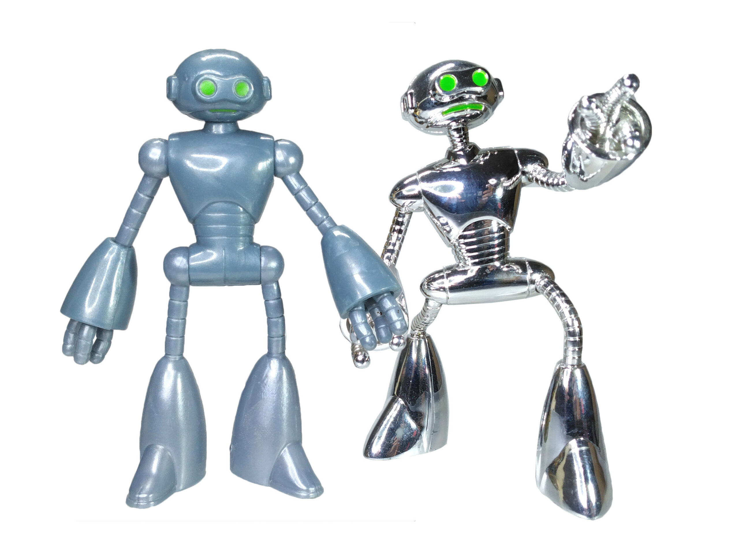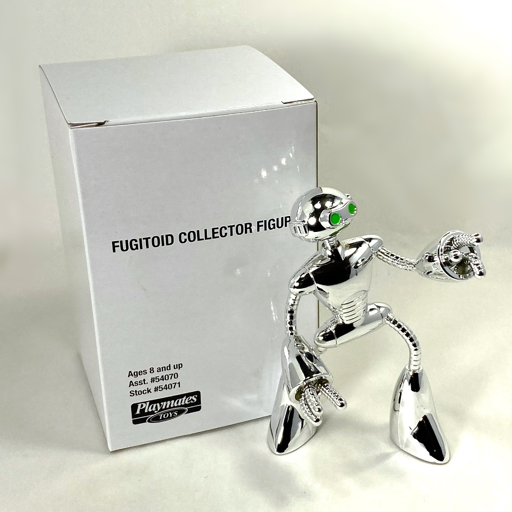 Deux années plus tard, lorsque le projet de figurine du Fugitoid était arrivé sur la table, Laird chercha à convaincre les équipes de l’importance de lui offrir un revêtement dit « Vacuum metal », processus bien connu de l’industrie du jouet permettant de donner un effet chromé aux figurines. Cette insistance était ainsi devenue un gag entre Aaronian et Laird au fil des années, lorsque le cocréateur des tortues sentait que cet ajout était nécessaire (source). Finalement, il s’est retrouvé sur des personnages comme Chrome Dome ou encore le duo Robotic Bebop et Robotic Rocksteady.