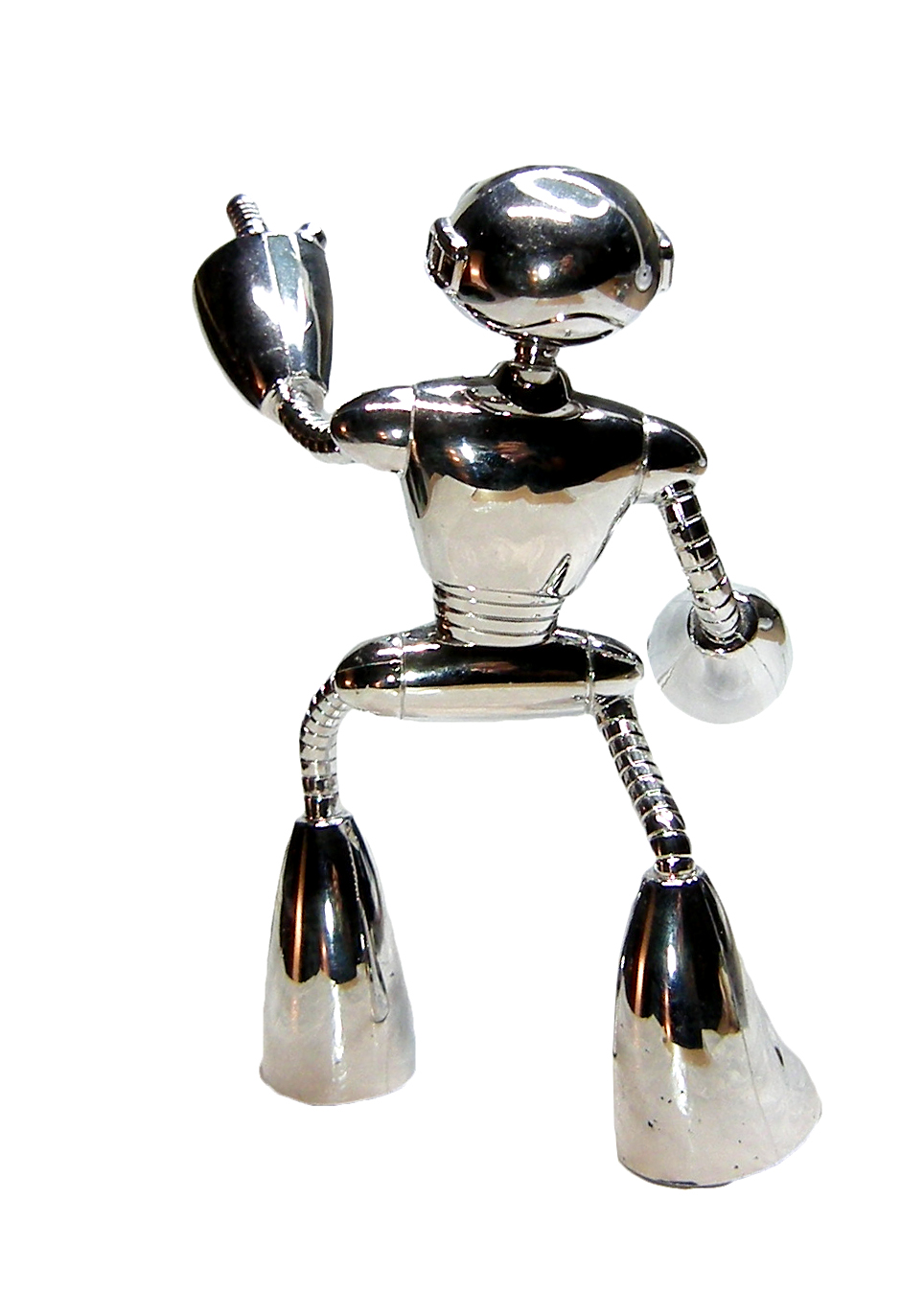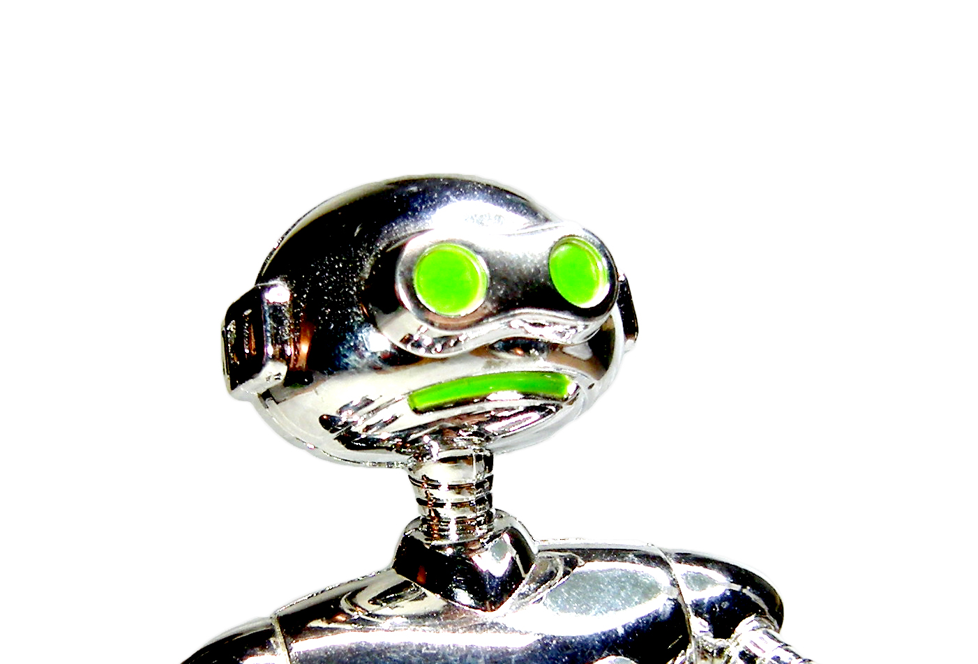Le Fugitoid est recouvert d’une peinture chromée sur l’ensemble de son corps. Seul élément de couleur, le vert, se trouve au niveau de ses yeux et de sa bouche.