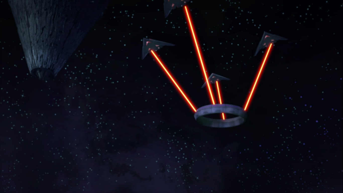 Dans la continuité temporelle initiale, l’Empire triceraton mit la main dessus et l’amena sur Terre. L’anneau était enclenché par une minuterie. Une fois opérationnel, il monta dans le ciel et se dilata, ouvrant ainsi un trou noir gigantesque. Il aspira la Terre (L’anéantissement de la Terre, S3 E26).