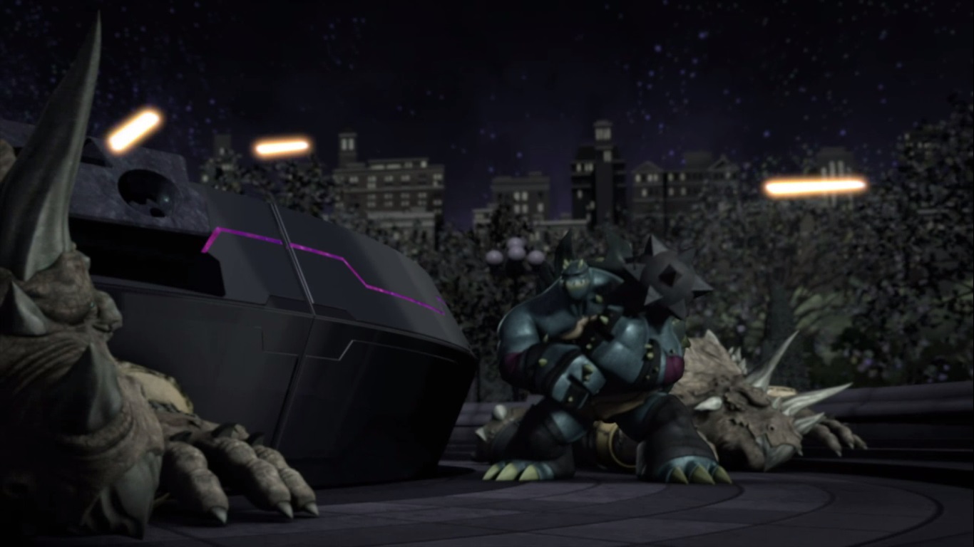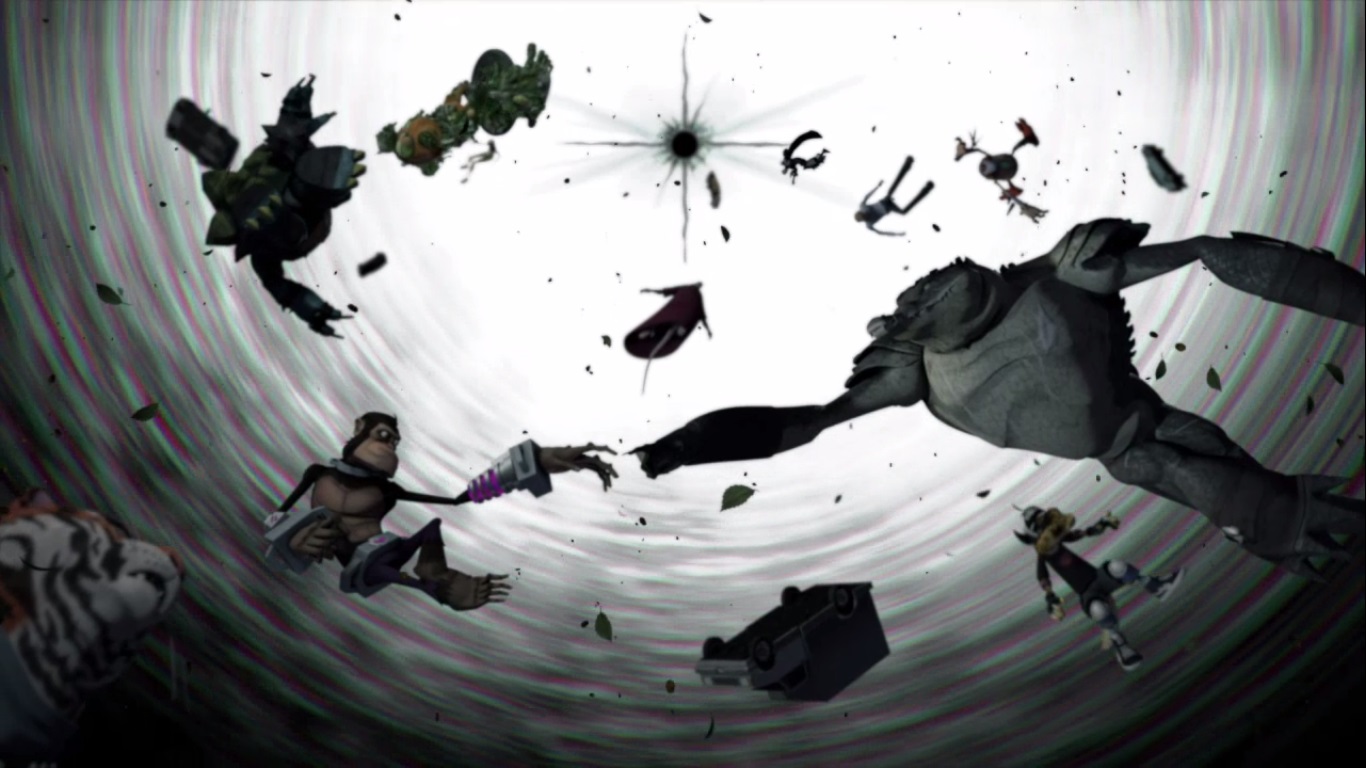 Le temps pressait pour les tortues, et le Fugitoid leur avoua finalement qu’il avait créé le générateur et l’avait lâchement vendu aux kraangs par avidité. Les tortues, déstabilisées, préférèrent combattre les triceratons seules. Finalement, l’unique manière de détruire le générateur était de combiner une source atomique et de la matière noire, ce qui composait respectivement l’énergie du Fugitoid et de son vaisseau. Ce dernier se sacrifia en jetant le vaisseau et le générateur dans le vaisseau amiral des triceratons, les conduisant à leur perte (Ultime chance pour la Terre, S4 E14).