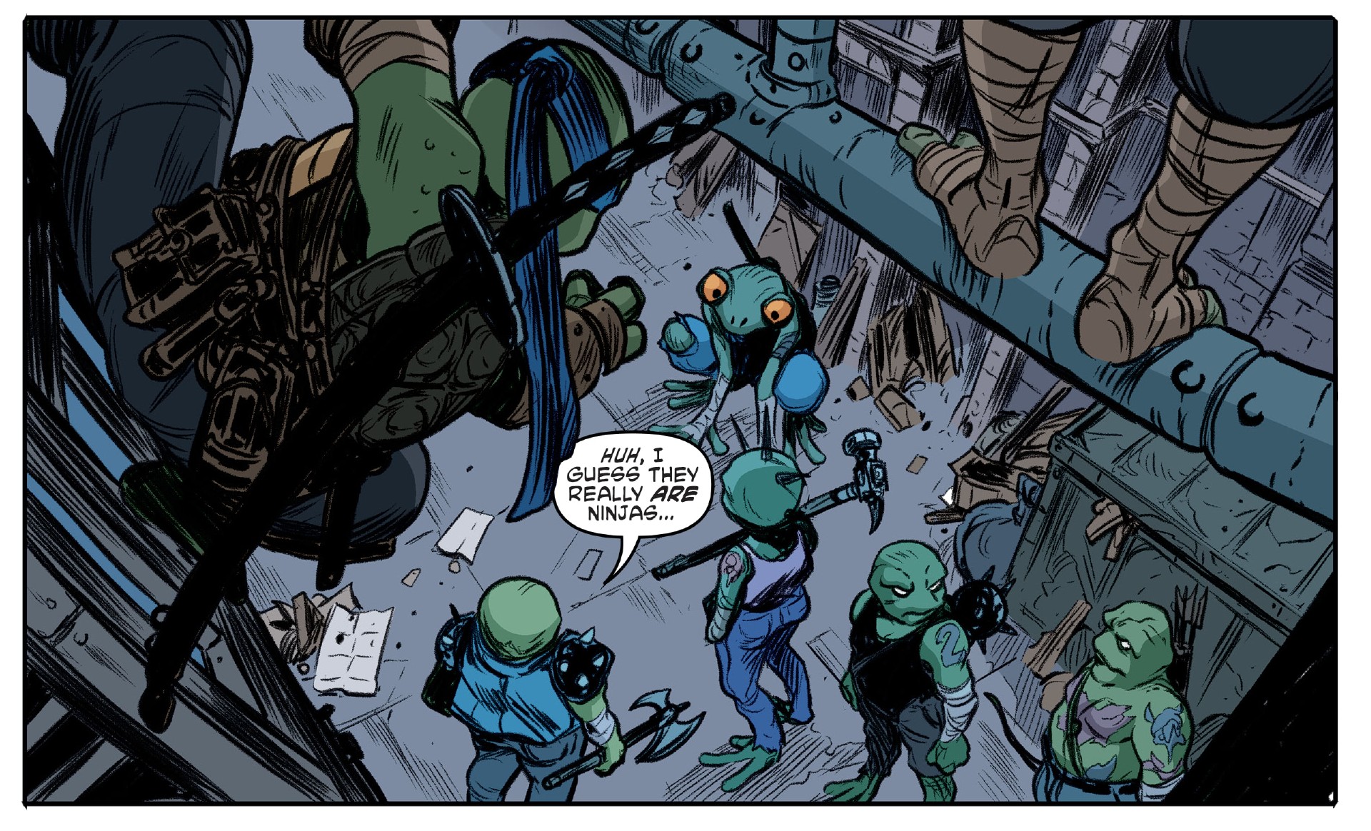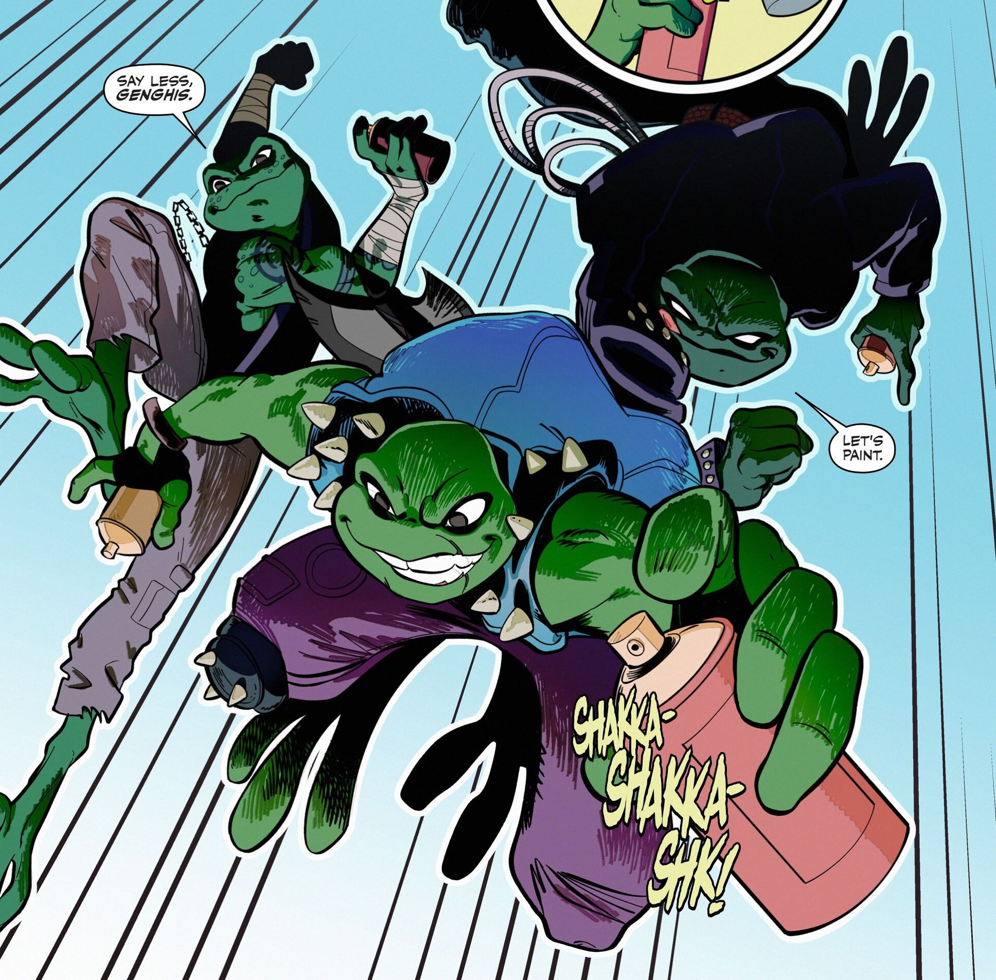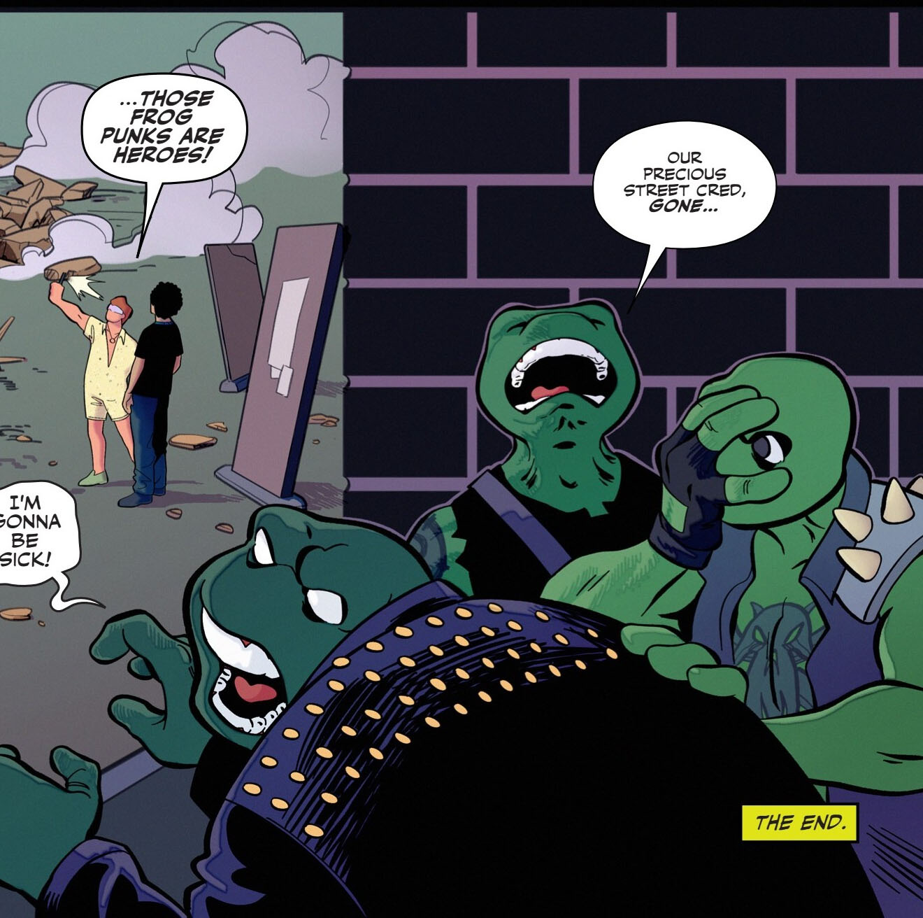 Par la suite, les grenouilles restèrent aux abords de Mutant Town et passait leur temps à faire des graffitis sur les murs des bâtiments (Mutant nation #5 – Frogs vs. Punks).