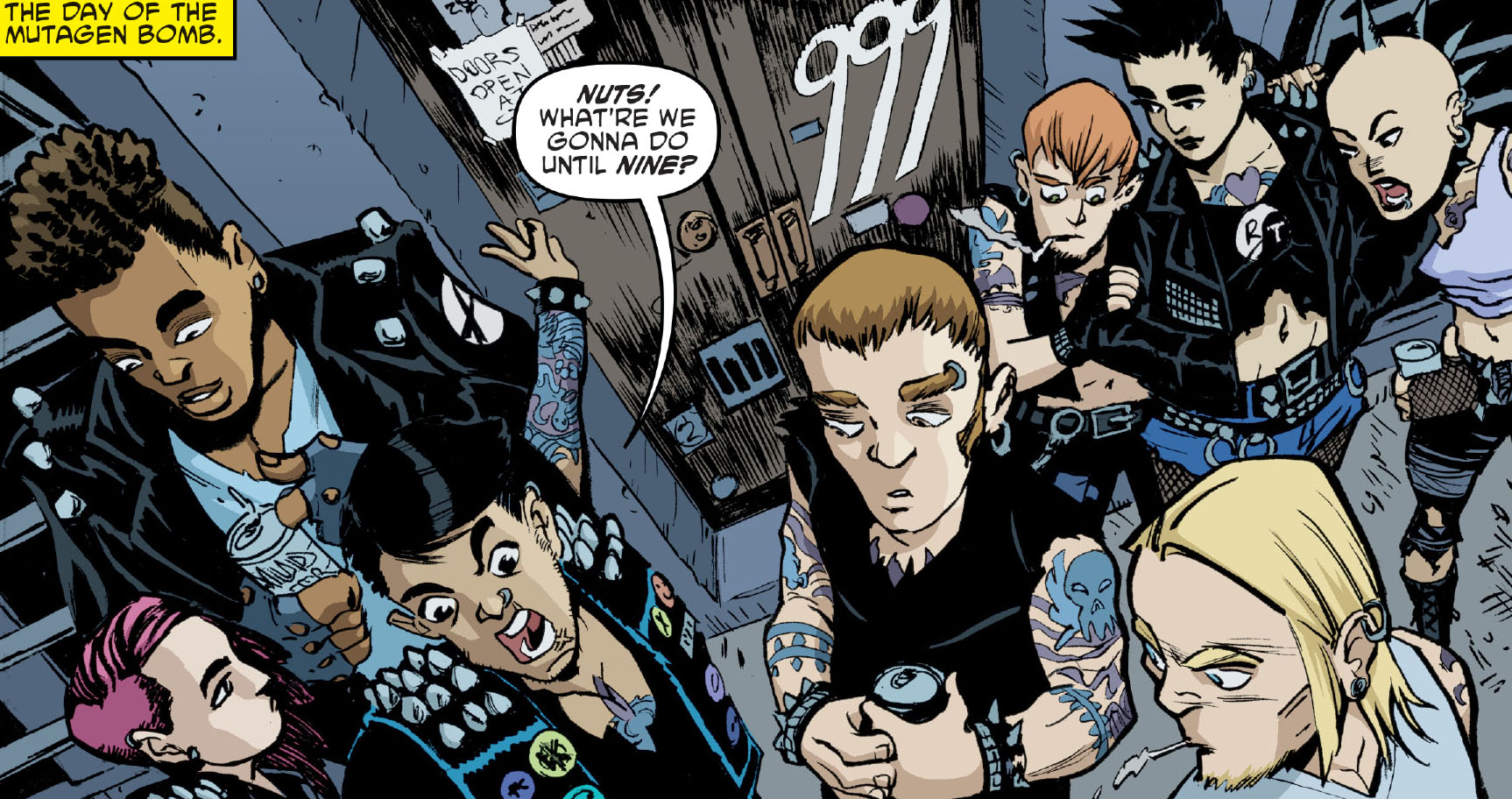 L’un de leur membre, Bonnie, avait été enlevé. Son compagnon, Clyde, pensait avoir reconnu son ravisseur, Donatello, tortue à la carapace métallique. Genghis et les siens partirent pour le dojo, commençant par agresser Casey Jones. Pénétrant dans le lieu, ils menacèrent les tortues avant de l’incendier (TMNT (Vol. 5) #125). En représailles, les tortues attaquèrent les grenouilles dans la rue, essuyant un nouvel échec (TMNT (Vol. 5) #126).