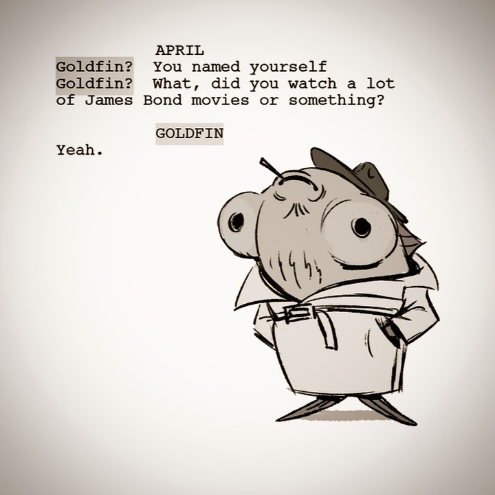 - Goldfin est un fan de l’univers de James Bond. Dans l’épisode Splinter et April affrontent un poisson rouge (S1 E9), il fait également une référence à Moonraker.